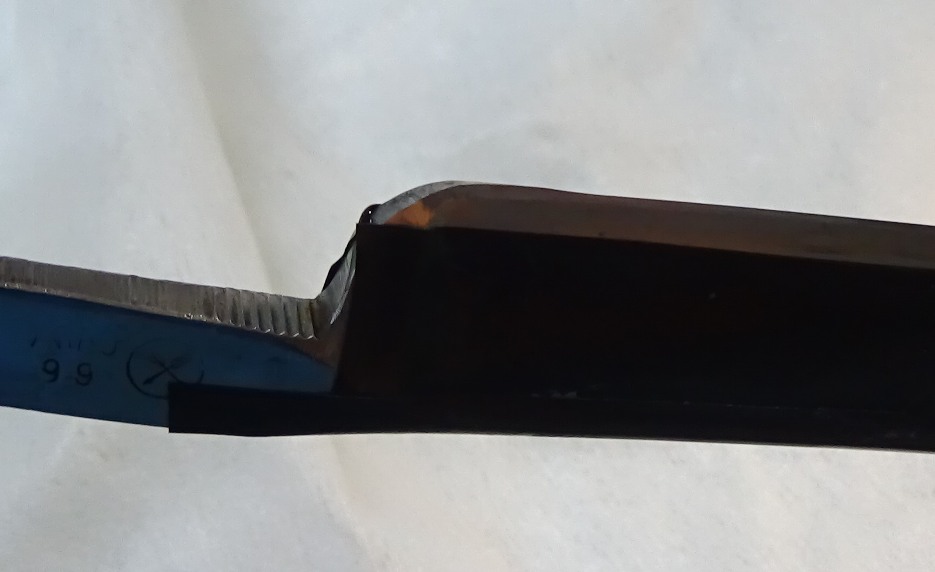 Вот 2 ГД - один за много тыщ, другой за 300руб - кроме полировки я разницы не вижу, ни внешне, ни в заточке. Претензия клиента на бритье понятна - кромка щербатая - дерет. НО! Тест на волос проходит уверенно - это к вопросу о использовании только одного теста в контроле чего-нибудь. Предыдущий заточник либо на арках точил либо с пастой переборщил, как итог - сколы. К секасу с ГД я был готов, так что переточил аккуратно на синтетике, затем япнат 4 от Гилмора (на фото узкий), который пока не пойму нравится мне или нет, затем твердый япнат на финише, ремень и готово. Вылезли откуда-то паразитные риски, но зеркальность повысилась и тест на волос намного уверенней, нежели после нетвердого япната, но нужно в бритье ещё сравнить. Эту заточку оценит другой человек.
