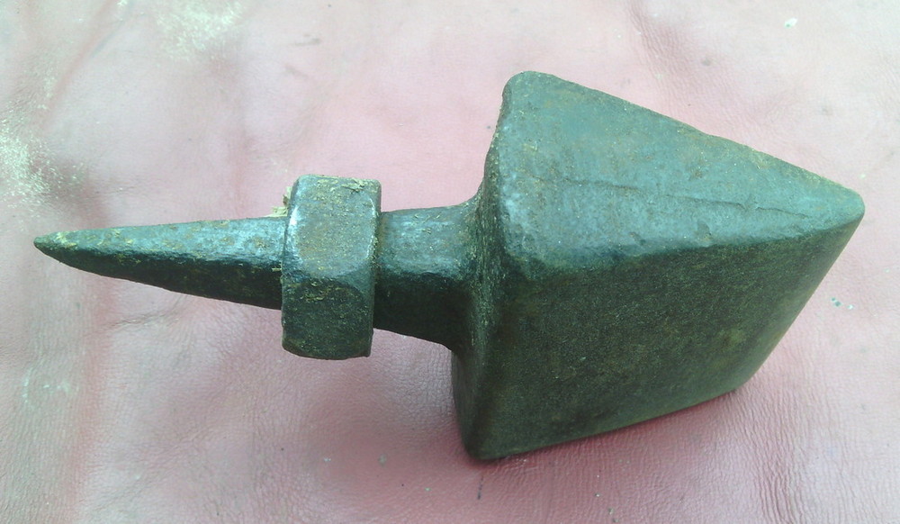 вот такая была. Острый конец в пень загонялся, а на верхнем клепка производилась, отбивалась.