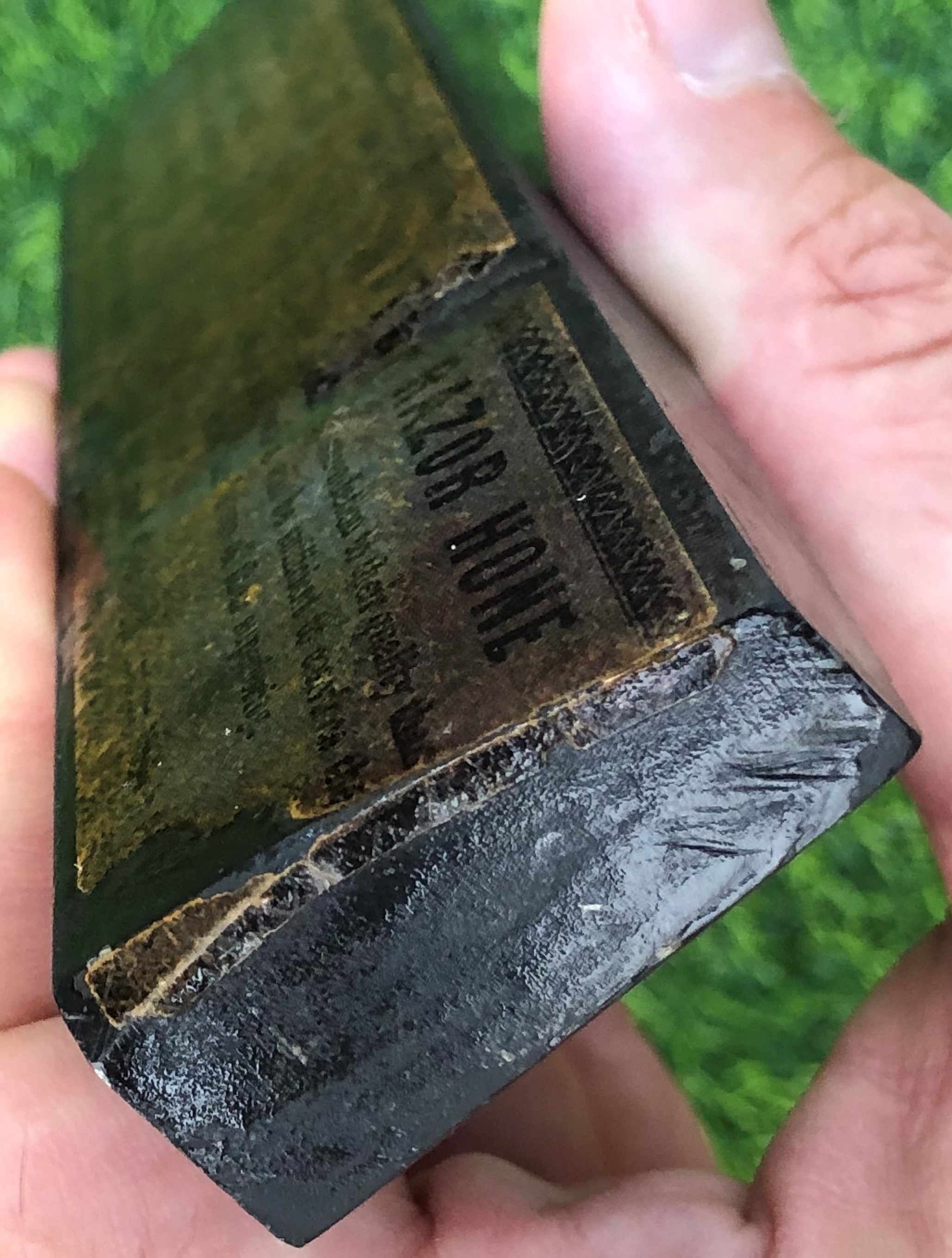 Размер камня:125х40х20 мм. Камень имеет оригинальную толщину, что дает возможность предположить, что камнем практически не пользовались. Слурик родной в комплекте!Камень притер и готов к работе.Цвет желто-зелёный, как наиболее желанный.Не пропустите редчайший коллекционный экземпляр 120 летнего возраста!