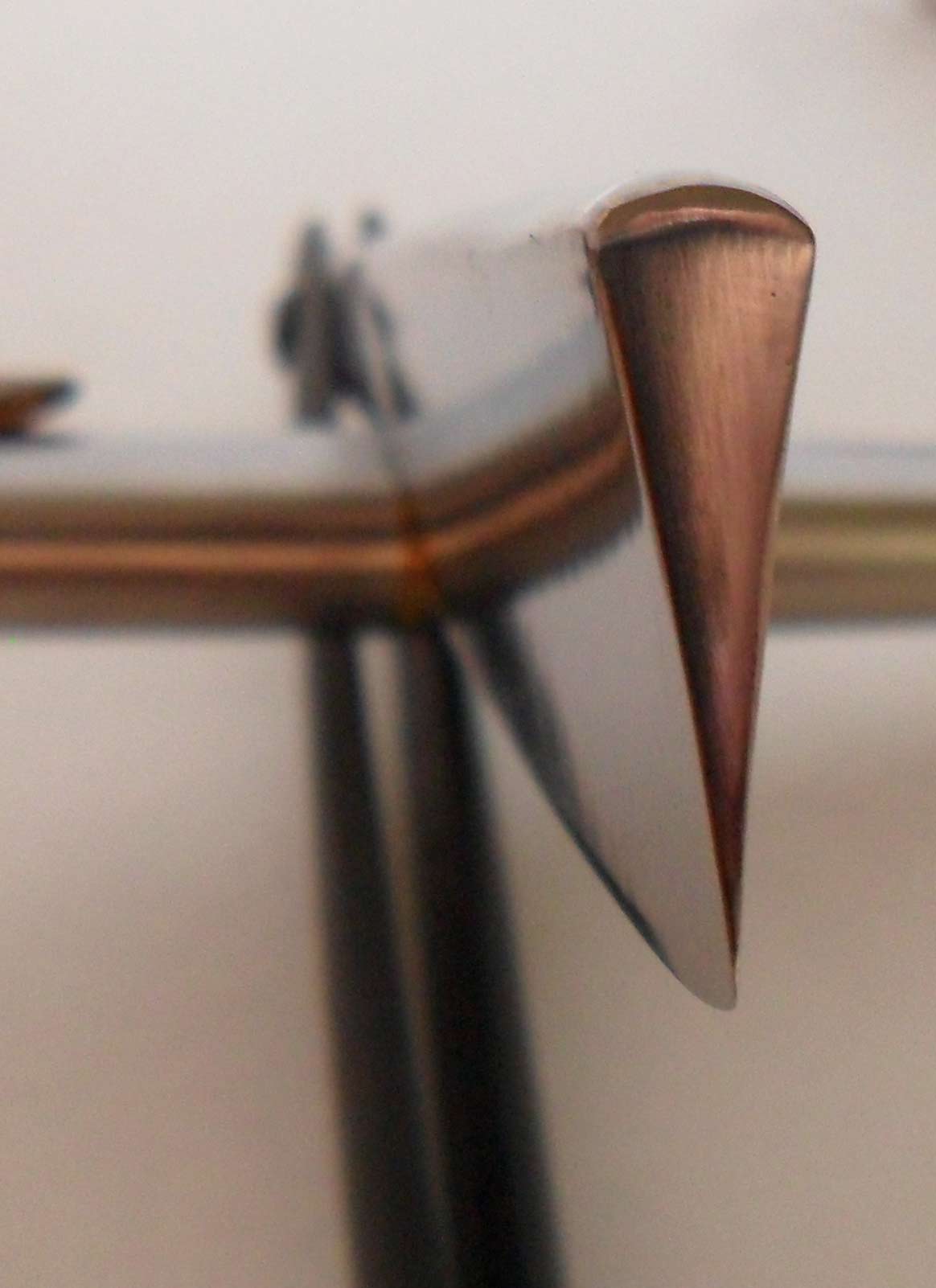 ПРОДАНА Spoiler Show Надпись на полотне: ECLIPSE Ручка и пины, по-видимому, родные, клинышек - металл. Ручка - рог, в прекрасном состоянии. С одной стороны возле головной заклепки пара трещинок-паутинок. Видимо, кто-то пытался неудачно подклепать пин. Трещинки не сквозные, более того, их размер такой, что на фото их не видно. Уверен, что проблем из-за них не возникнет. Естесственно, заточена и полностью готова к бритью. Ширина полотна 19,5 мм, толщина в обухе 5,5 мм.
