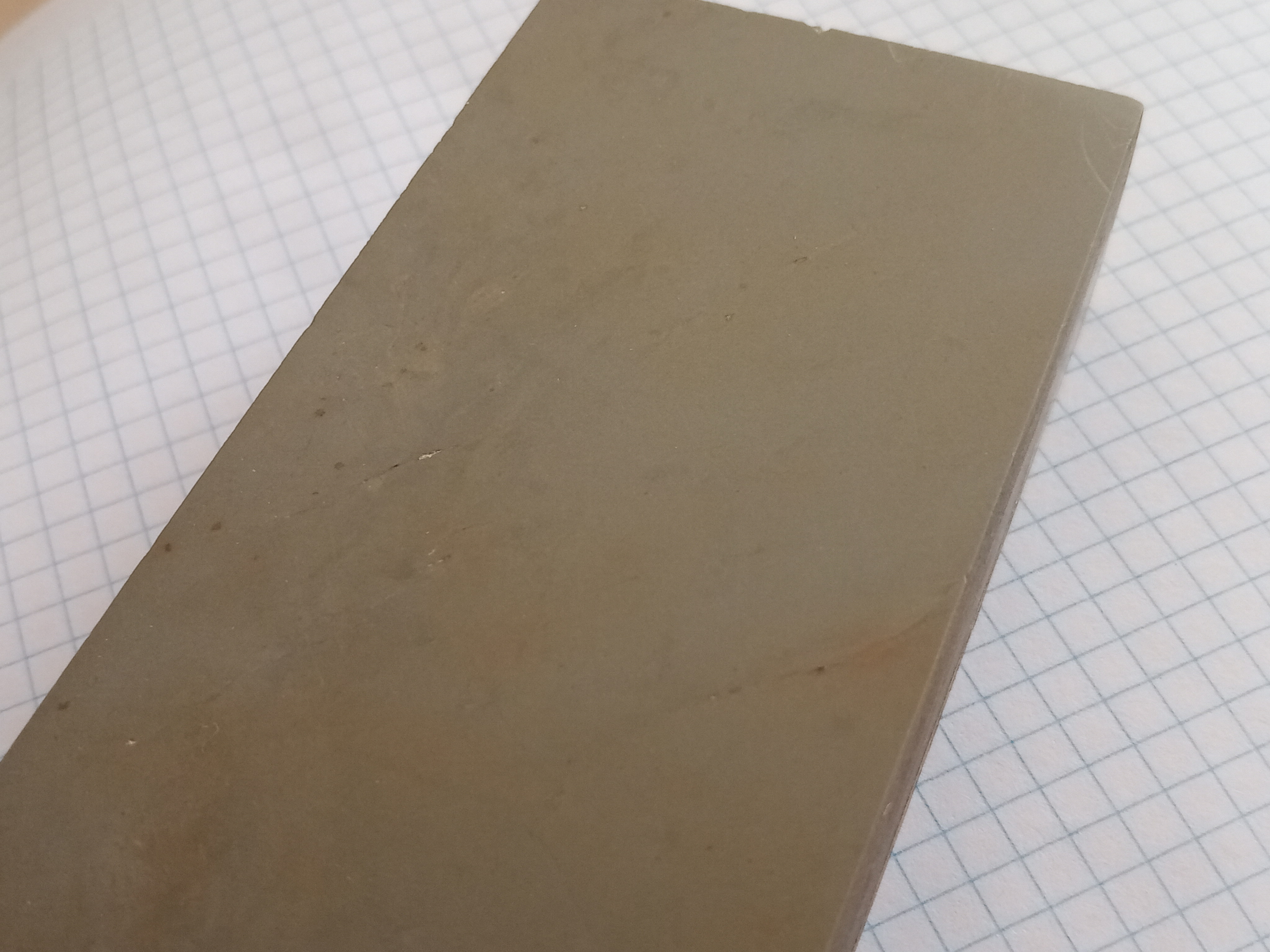 Помогите определить каменьВсем добра! Уважаемые гуру форума, помогите опознать и оценить камушек. Камень найден в заброшенной швейной кожевенной мастерской в славном граде Валенсия, что в Испании. Девайс помыт, почищен, выровнен и притерт на стекле. По ощущениям и визуально гритность камня ок. 7-8 тыс