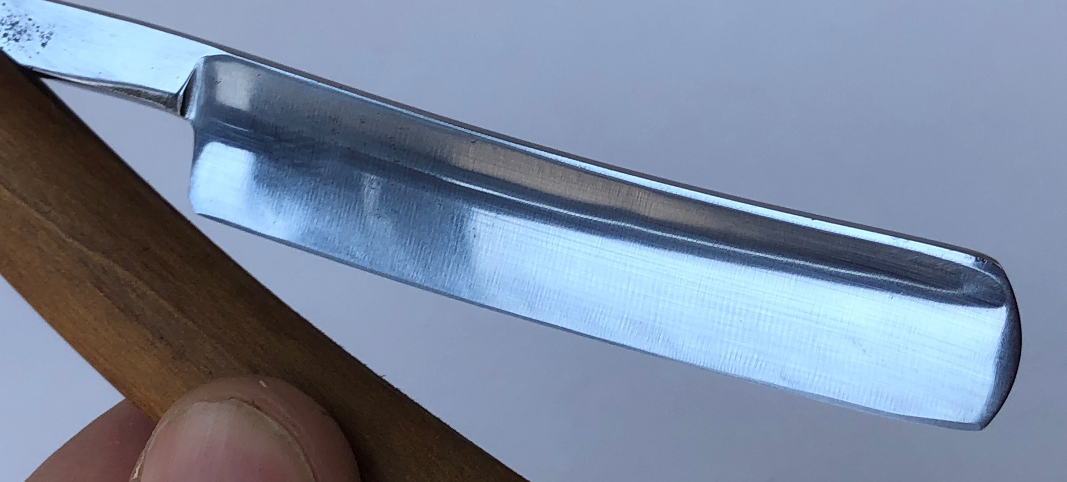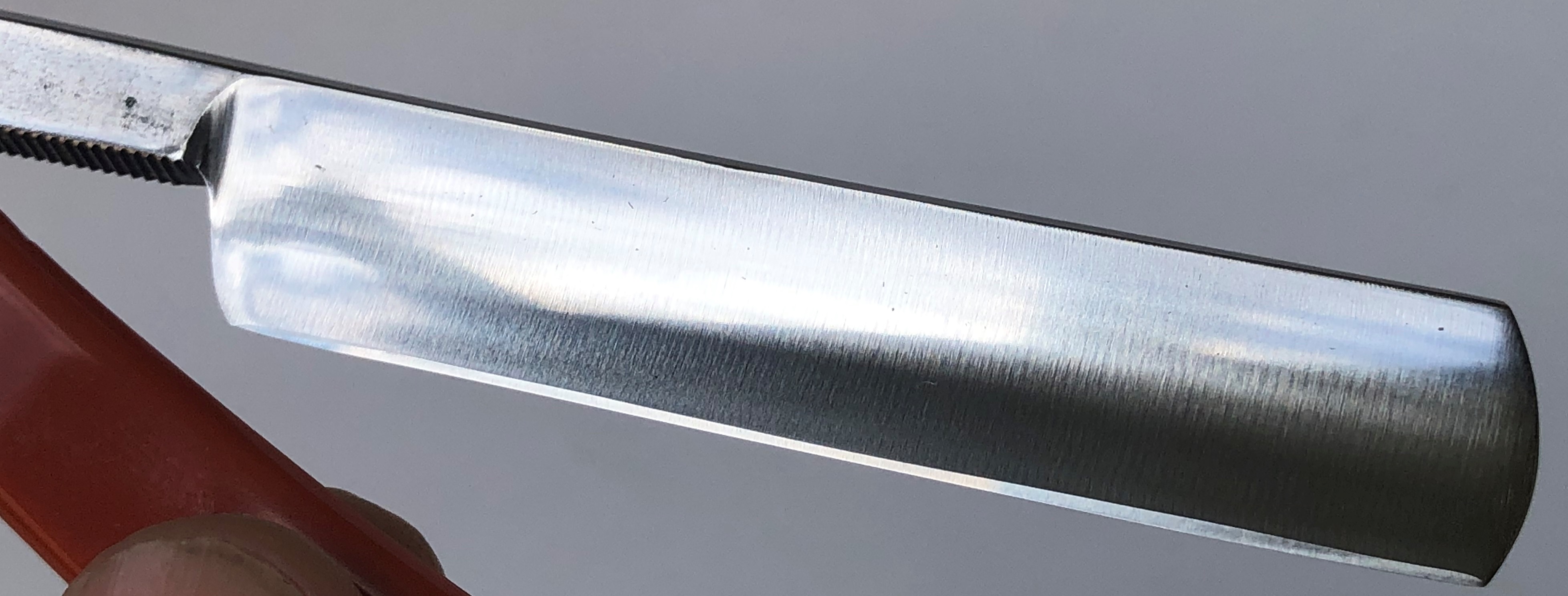 Бритва не разбиралась и не ремонтировалась.Оригинальная шлифовка.Немного полирнул для придания былого блеска и удаления микро-царапин .Сталь и кромочка чистые от видимых дефектов.Сама кромка равномерна по всей длине. Бритва заточена и готова к бритью.
