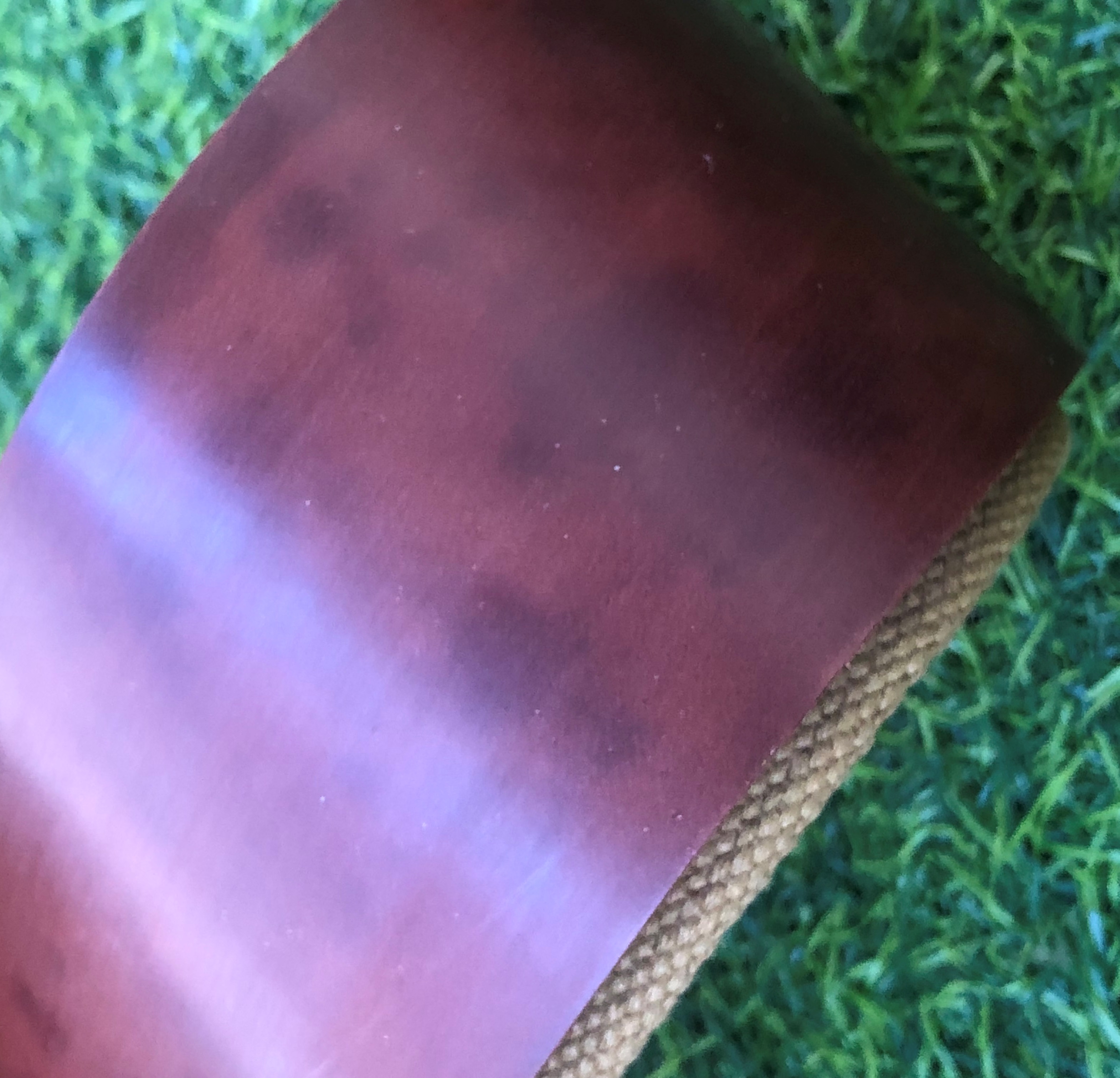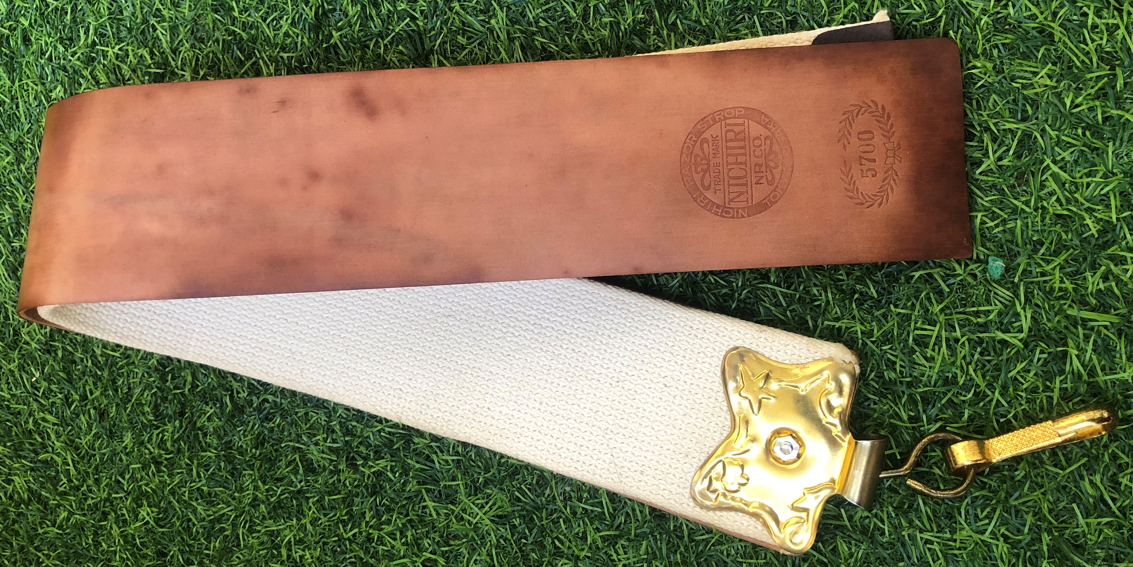 Период-1950-60- е годы. Размер:600х63х3.5(5.0) мм. По всей видимости ремешок немного б.у.,но состояние очень хорошее. Качество кожи в отличном сохране.Кожа умеренно мягкая, гладкая и эластичная. Без порезов, трещин, рассохшихся мест и т.д.Льняной холст простирал на деликатной стирке, так что он чистый, просто , по всей видимости изначально был натерт нагурами, как это часто делали японцы, в связи с чем получился такой вид.Холст мягкий и готов к пользованию. Сам кордован не ремонтировался, так что все в оригинале. Цена-25500 р с доставкой.ПРОДАН 4. Непользованный японский ремень из Кордована SP-2, в редком исполнении. Тут вместо второй стропы присутствует легкое японское дерево, (типа сая, как для ножен катан и ножей) и слой поролона.Представляется прекрасная возможность править бритву как на столе, так и на весу,не натягивая ремень до нужного состояния.Это особенно будет удобно новичкам, так как при такой конструкции сложнее будет порезать полотно кожи по неопытности.Также, по желанию можно дополнительно докупить льняную стропу, и править как обычно, хотя такой метод, с жестким, но эластичным основанием мне нравится больше. Ремень совершенно нетронутый и готовый к бою. Хотел еще раз обратить внимание, что фото предаёт разные оттенки полотна кордована, хотя наяву всего это совершенно не видно. Размеры:600х63х4(3) мм. Цена-45500 р с доставкой.