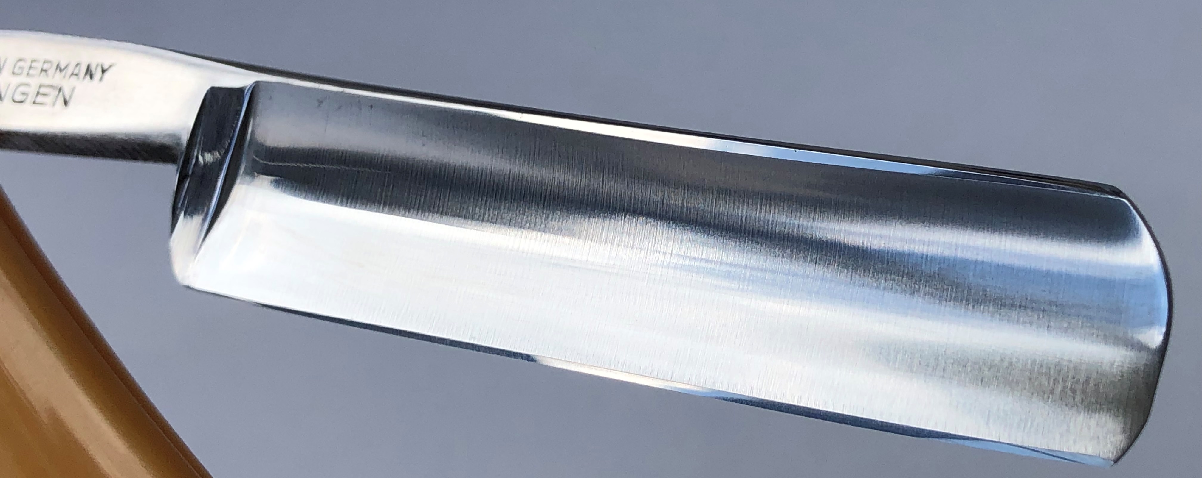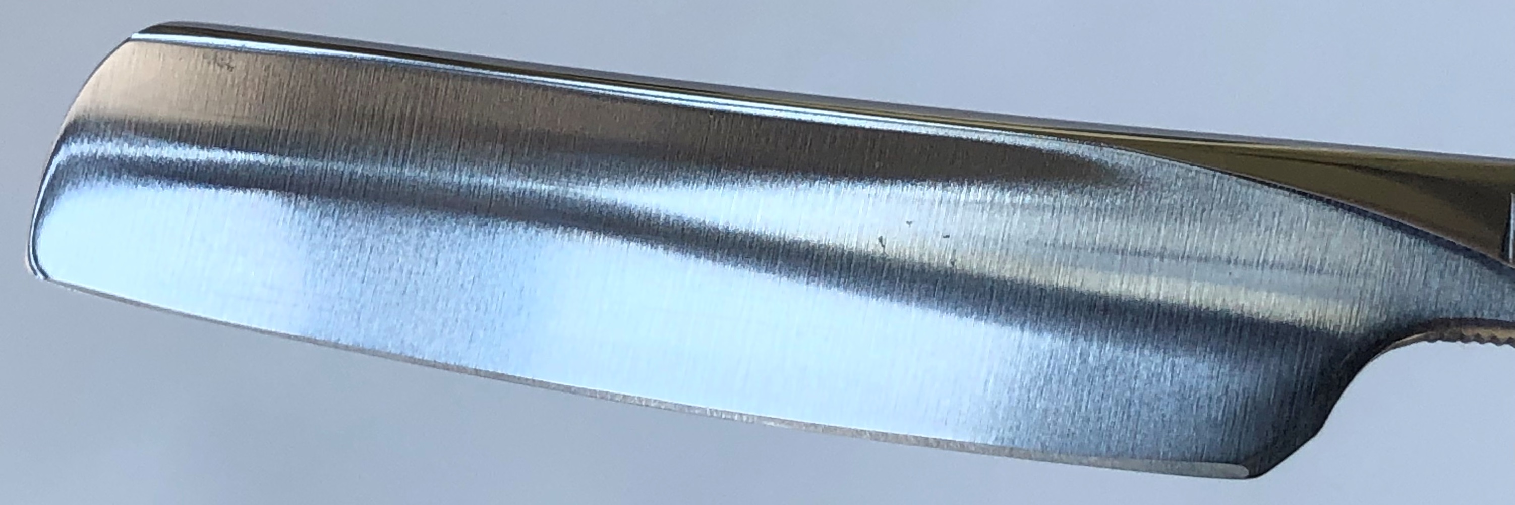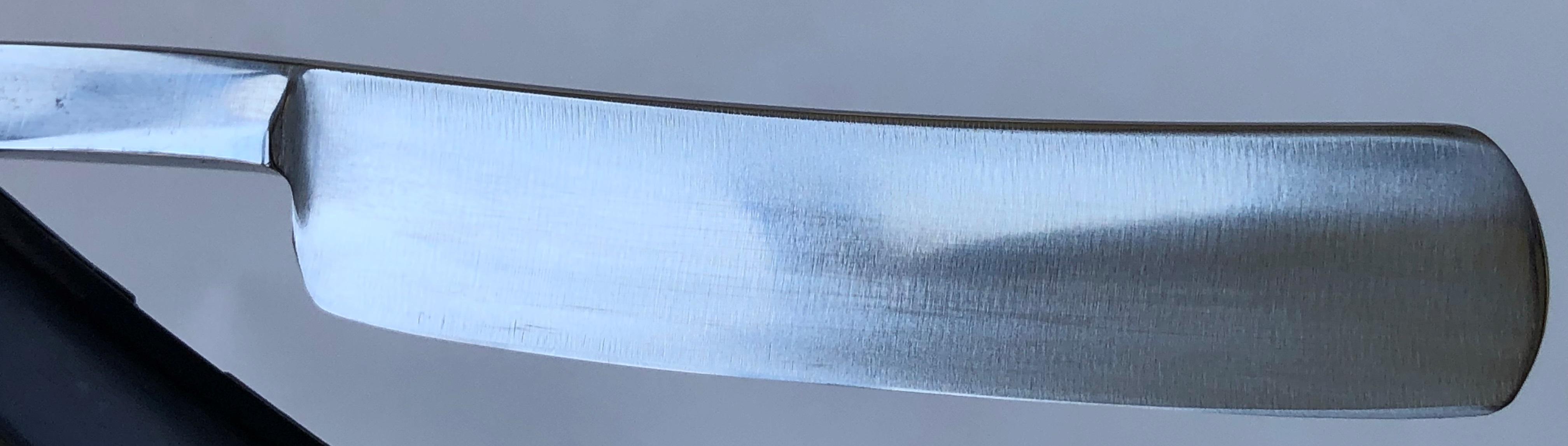 Ширина полотна-21.0 мм. Толщина обушка-6.6 мм! Длина РК-68.0 мм. Полная вогнутость. По всей видимости условно нержавеющая сталь. Бритва 60-70-х годов производства. Самая крупная и тяжёлая модель от Хенкельсов. Клинок укорочен, не знаю по какой причине.Но само состояние полотна очень хорошее, без следов активного пользования.Ручка неродная, но также тяжёлая и достаточно толстая.Клинок был приведен в порядок и умеренно отполирован.Кромка равномерна по всей длине.В общем и целом неплохая бритва за свои деньги. Заточена и готова к бритью. Из за укороченного клинка продается со значительной скидкой, практически по цене советской бритвы,так что не пропустите! Цена-7500 р с доставкой.ПРОДАН Внимание! Важная информация! Spoiler Show