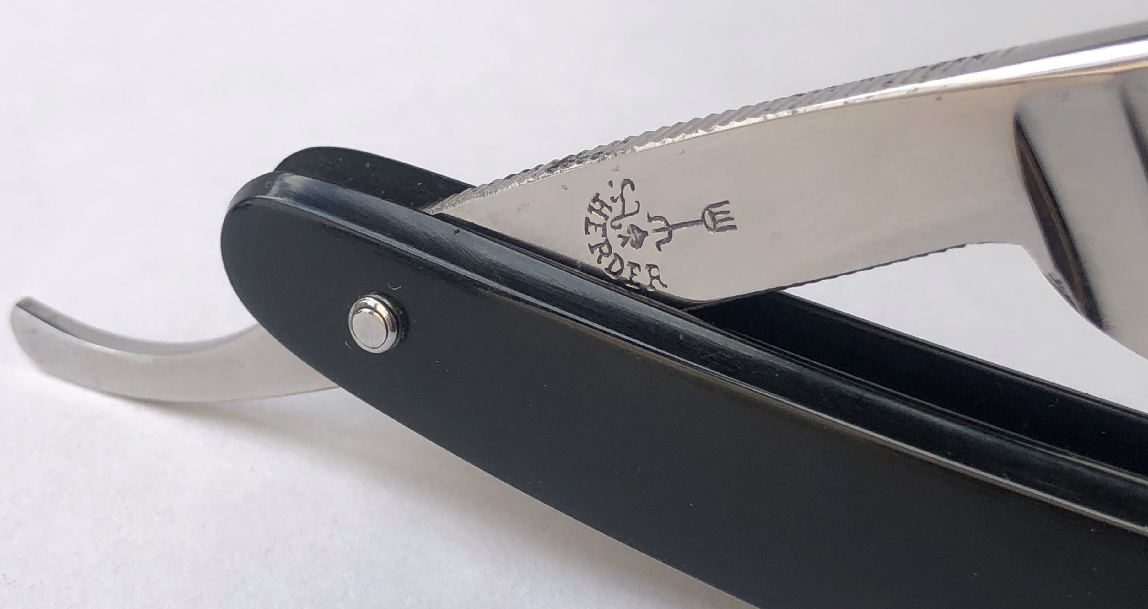 Ширина полотна-21.0 мм. Толщина обушка-6.0 мм. Полная вогнутость. Углеродистая сталь. Примерно 50-60- е годы прошлого века производства. Бритва находится в идеальном и совершенно непользованном состоянии.Только была удалена старая смазка с металла.Оригинальная шлифовка и полировка полотна. Немного улучшил конструкцию осевого механизма, добавив внутренние шайбы, которые по какой то причине на эти модели никогда не ставили. Родные пины были перебраны и заново установлены, так что все хорошо получилось.Идеальная геометрия полотна:кромочка равномерна по всей длине и почти незаметна. Отличная "звонкая" немецкая углеродка. Мощная оправа. Родная коробочка в наличии! Перед отправкой бритва будет обязательно заточена и доведена до комфортного бритья. Цена-20500 р с доставкой.ПРОДАН Внимание! Важная информация! Spoiler Show