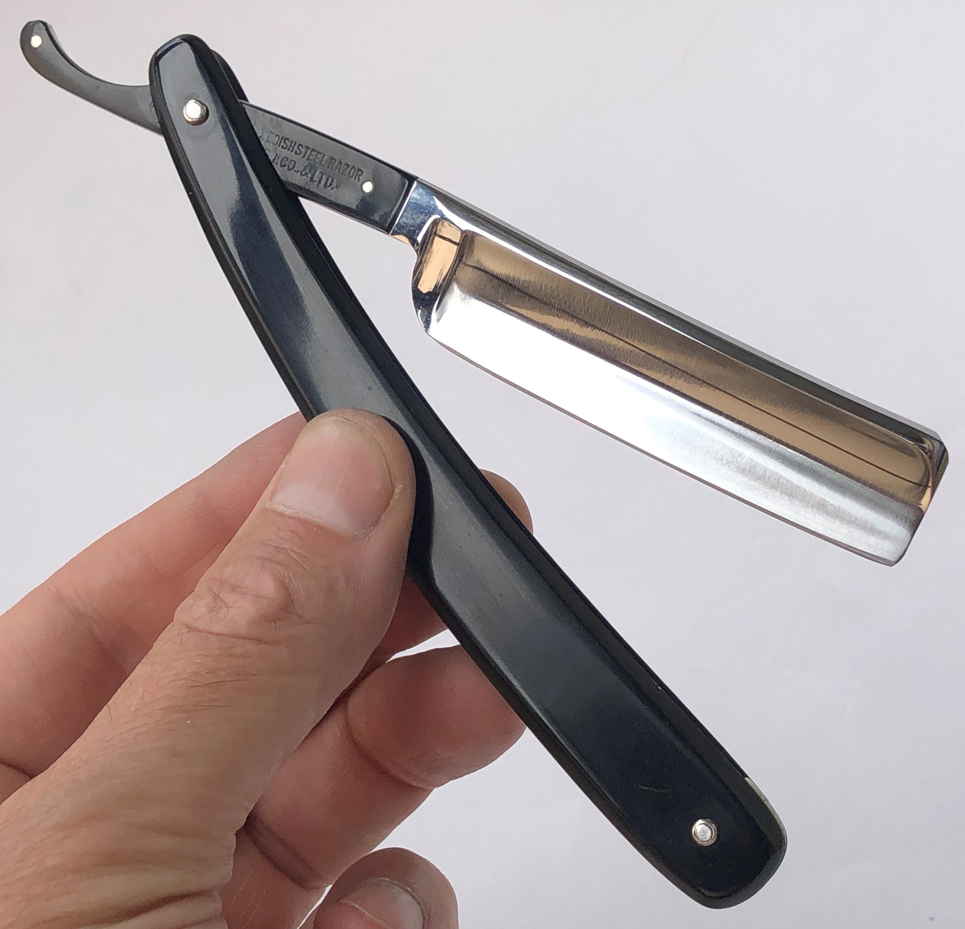 Ширина полотна-20.0 мм. ТОлщина обушка-6.0 мм. Полная вогнутость. Шведская углеродистая сталь. Примерно 60-е годы прошлого века. Бритва в очень хорошем состоянии.Была разобрана , для добавления внутренних шайб и удаления небольших "следов времени".Оригинальные пины удалось заново поставить на место.Сталь и кромочка чистые, от разного рода видимых дефектов.Эффектные пластиковые накладки.Профессиональная бритва. Была бы очень удобной для новичка, в качестве стартовой.Высококачественная шведская "звонкая" углеродка, как наиболее удачная при производстве бритв. Будет заточена и подготовлена к бритью. Цена-12500 р с доставкой. Внимание! Важная информация! Spoiler Show