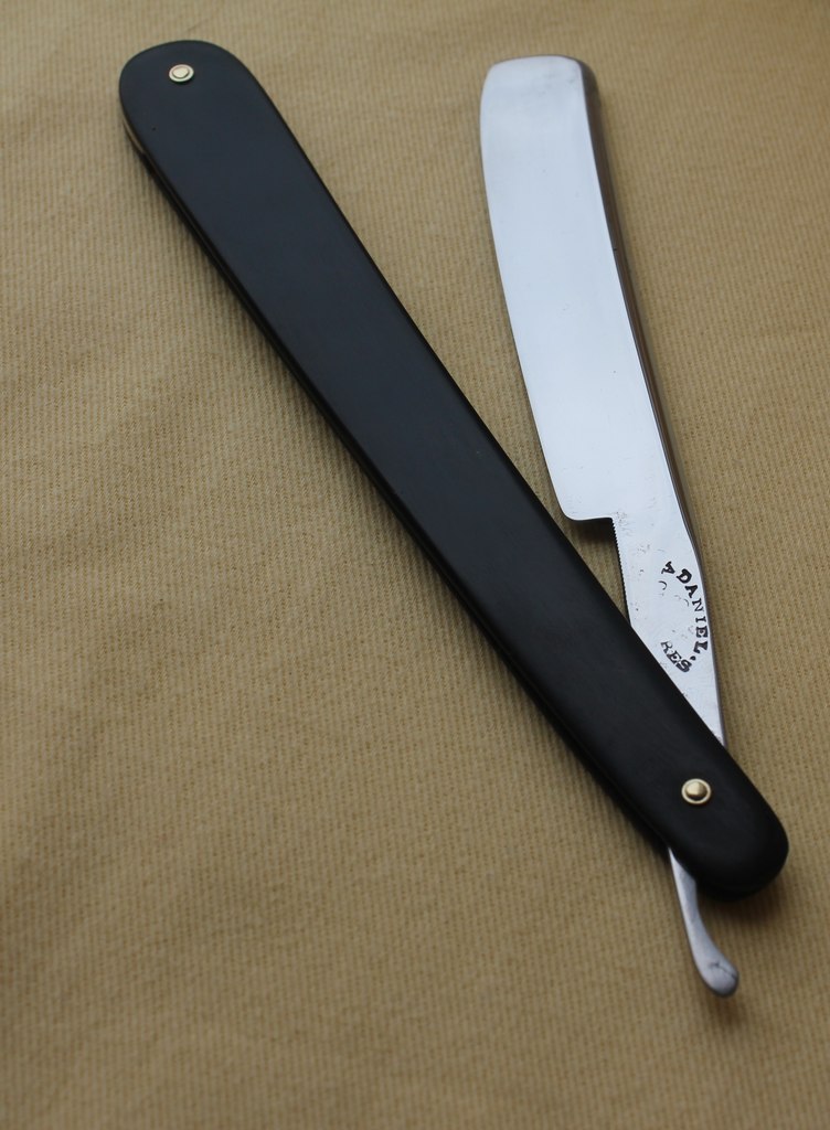 Бритва новая, камней не видала. Ширина полотна 3/8, да и сама она миниатюрная. Заточена и готова к бритью.