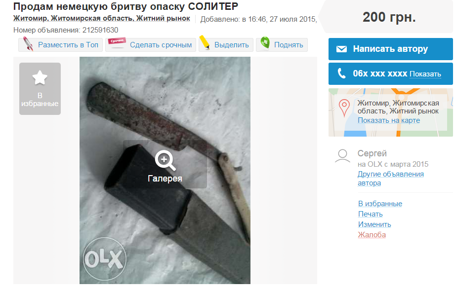 Re: Аукционы: плагиат, развод и "великолепные" описаниятакой бритвой токма солитёра и выковыривать ))