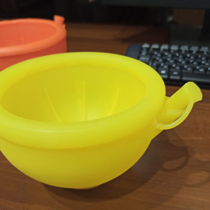 Кружка для бритья из силиконаРабота над изделием продолжается и приближается к завершению. Добавлена пробка-"непотеряшка" и продух для обеспечения правильного наполнения и опорожнения скаттла. К тому же это отверстие 2,5 мм не позволит "взорваться" скаттлу в микроволновке, если пробка будет закрыта. Поиграл немного с цветом. На очереди двухцветные изделия, например зелено-серые, желто-синие, серо-оранжевые, сине-оранжевые. Предлагайте интересные сочетания цветов!