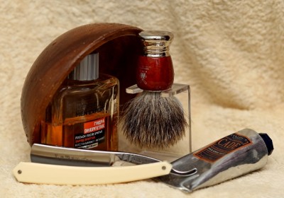 Крем для бритья: Nivea для чувствительной кожи Бритва: Le Dandy, TI, 5/8 Помазок: Muehle Pinsel Чаша: деревянный салатник Premier Housewares После бритья: лосьон L'oreal Men Expert Гидра энергетик и минут через 20 - бальзам после бритья loccitane CADE (можжевельник) (пену на помазок нанес уже после бритья, из баллона, для антуражу так сказать, но, наверное, зря