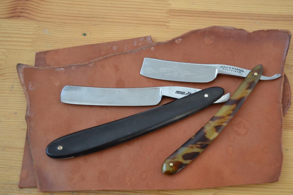 Как владелец данной бритвы, добавлю от себя точные размеры и пару фотографий первичного состояния Антуана до реставрации и заточки,в сравнении с тоже моим английским клином Хобсон 6/8. Значит Антуан из Гренобля имеет длину полотна 98 мм,полотно слегка сужается от пяточки к носику (головке). Ширина полотна у пяточки 19 мм,обушок 5,5 мм, у носика (головки) ширина 18,5 мм,обушок 4,5 мм. Вогнутость бритвы - микротом. У Хобсона в самом широком месте ширина 20,5 мм,обушок 5,1 мм. Оправа у Антуана из Гренобля родная - темный,цельный рог. Бритва непривычно крупных размеров,но в руке сидит удобно,из-за хорошего баланса. И бреет не хуже французских клинов,которых у меня в коллекции есть несколько штук,хвостатых и безхвостых.
