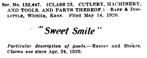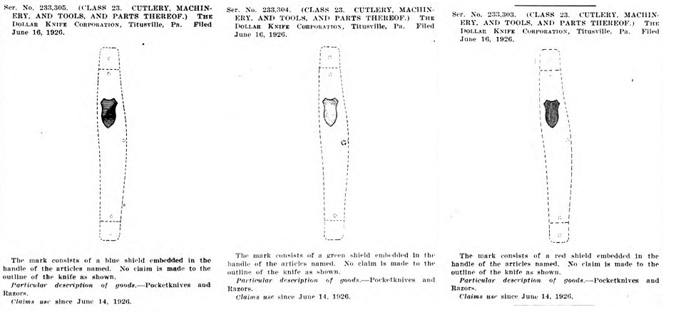 Запатентована форма бритвенной ручки со щитом. Три цвета щита - красный, голубой и зеленый, три патента. Зарегистрированы в 1926 году