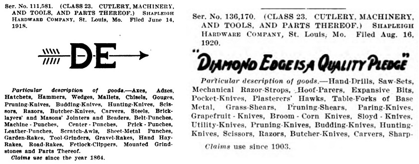 Торговая марка DIAMOND EDGE is a QUALITY PLEDGE используется с 1903 года, перерегистрирована в 1920 году