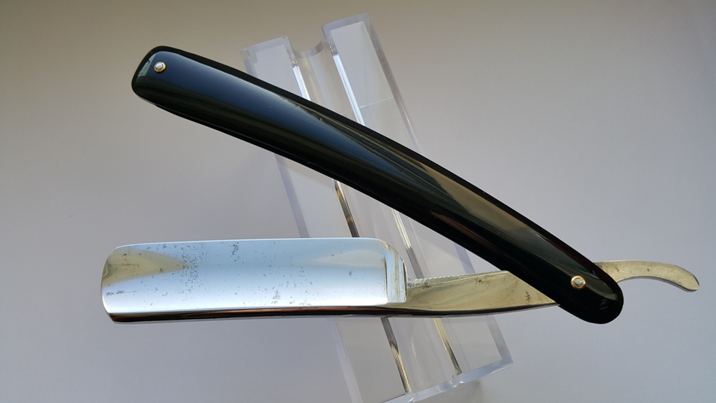 Ширина 17мм. Все родное. Заводской грубый сатин. Ручка из рога, ровная, без каверн и прочих следов времени. Есть намёк на небольшую трещинку у дальнего пина (см. фото). Клинок сидит на осевом пине плотно, паркуется в ручку штатно, без перекосов и закусываний. Бритва не разбиралась, не восстанавливалась. Свежезаточена у Alexey7, тончайшая и ровная на всем протяжении рабочая кромка. Мягкий комфортный рез, за который мы и ценим французские клины. Цена ПРОДАНО. Фото в полном разрешении без обработки выложил сюда: https://www.dropbox.com/sh/s59vjnh25p58 ... PJEIa?dl=0 Spoiler Show