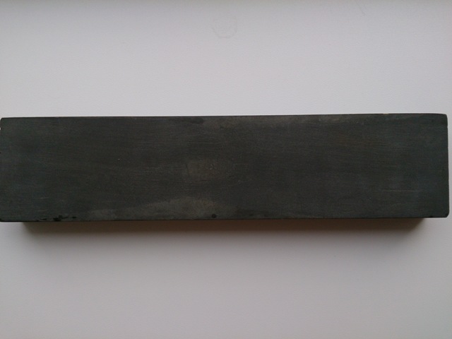размер - 127мм×58мм×26мм вес - 532 гр. цена - продано Черный сланец из Англии, он же "Драконий Язык", он же Валлийский сланец - "Dragons Tongue" Качество поверхности режущей кромки после валлийца приравнивается к качеству поверхности после японских 8000 - 10000 водников. Камушки твердые, работают достаточно быстро. К камням идет нагура размером 51мм×24мм×12мм. Поверхность камней с одной стороны доведена примерно на F100, с другой примерно на F320, в общем, желательно рабочую сторону еще довести, как следует, могу это сделать, тогда + 200 рублей к стоимости!! размер - 228мм×75мм×12мм размер может немного "плавать"! вес - может достигать 630 грамм цена - 2000 рублей! наличие - шт. ( проданы )