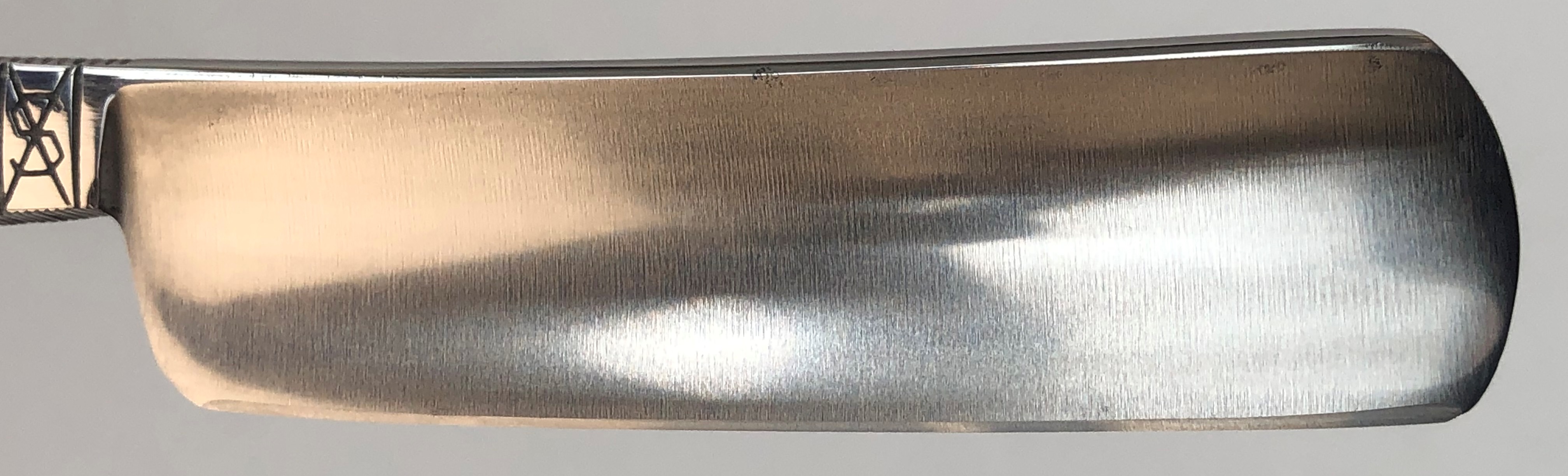 Эта бритва находится в исключительном, коллекционном состоянии. Ничего не разбиралось и не ремонтировалось.Оригинальная шлифовка и полировка полотна. Заточена впервые.Кромочка равномерна по всей длине и практически незаметна.Фирменный, эффектный кованый эрль.Удобный хват.Родная коробочка.