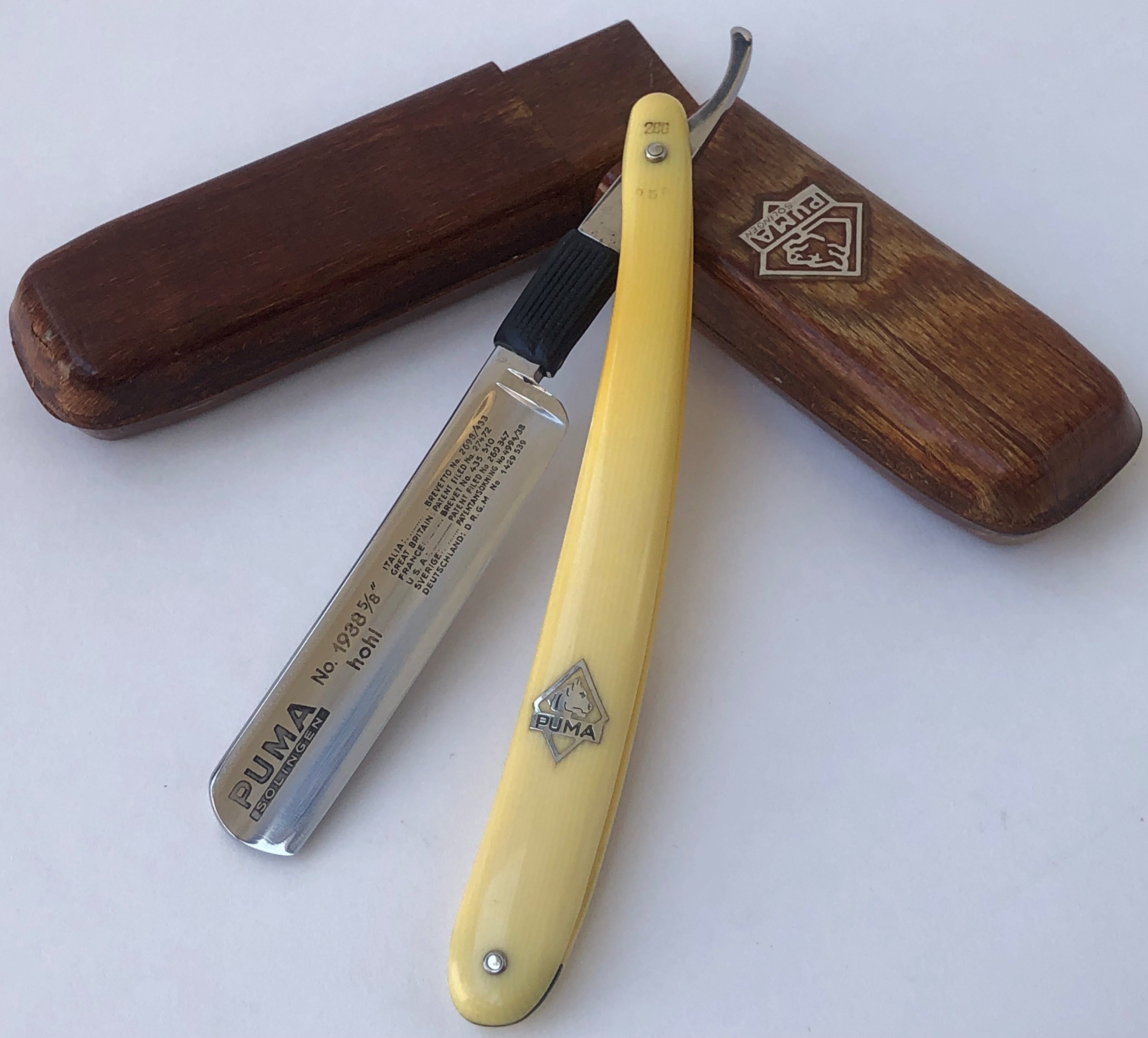 Эти бритвы 1938 модели наиболее редкие и дорогие, так что не пропустите очень хороший вариант, средней ценовой категории. На мой взгляд, тут не такая сухая и твердая сталь, как на большинстве других Пум, поэтому и бритьё не такое жёсткое. Можно порекомендовать новичку, как очень удобный инструмент для обучения, а также опытный пользователь в полной мере в состоянии оценить высококачественную сталь в деле.. Бритва заточена и готова к бритью.