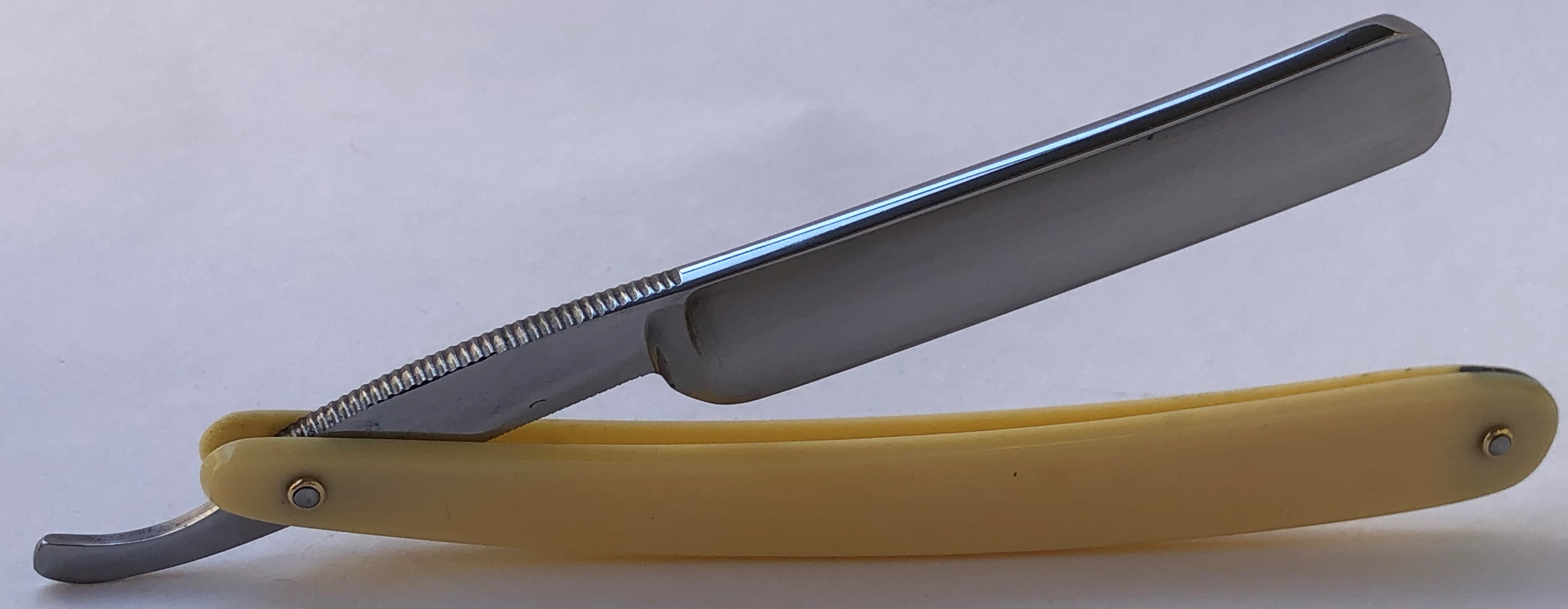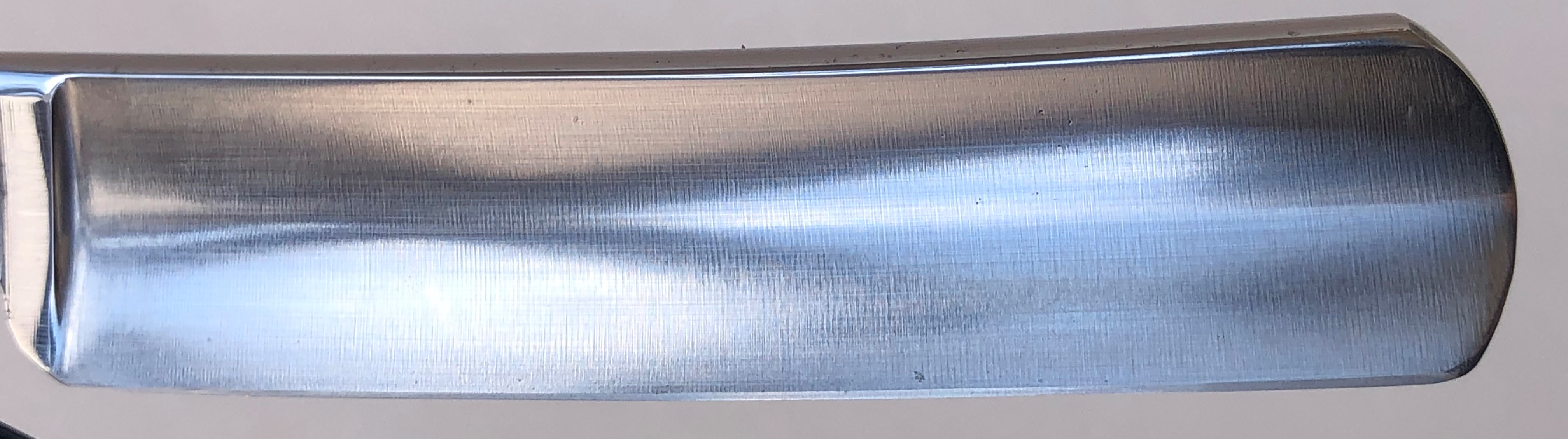 Стал и кромка чистые от разного рода видимых дефектов.Бритва заточена и лично протестирована. Отличное чистое и мягкое бритьё. Очень удобная форма лезвия и размер не только для новичка, но и отлично подойдёт для опытного пользователя. Прекрасный, старинный вариант в свою коллекцию, так что не пропустите 100-летнюю старушку!