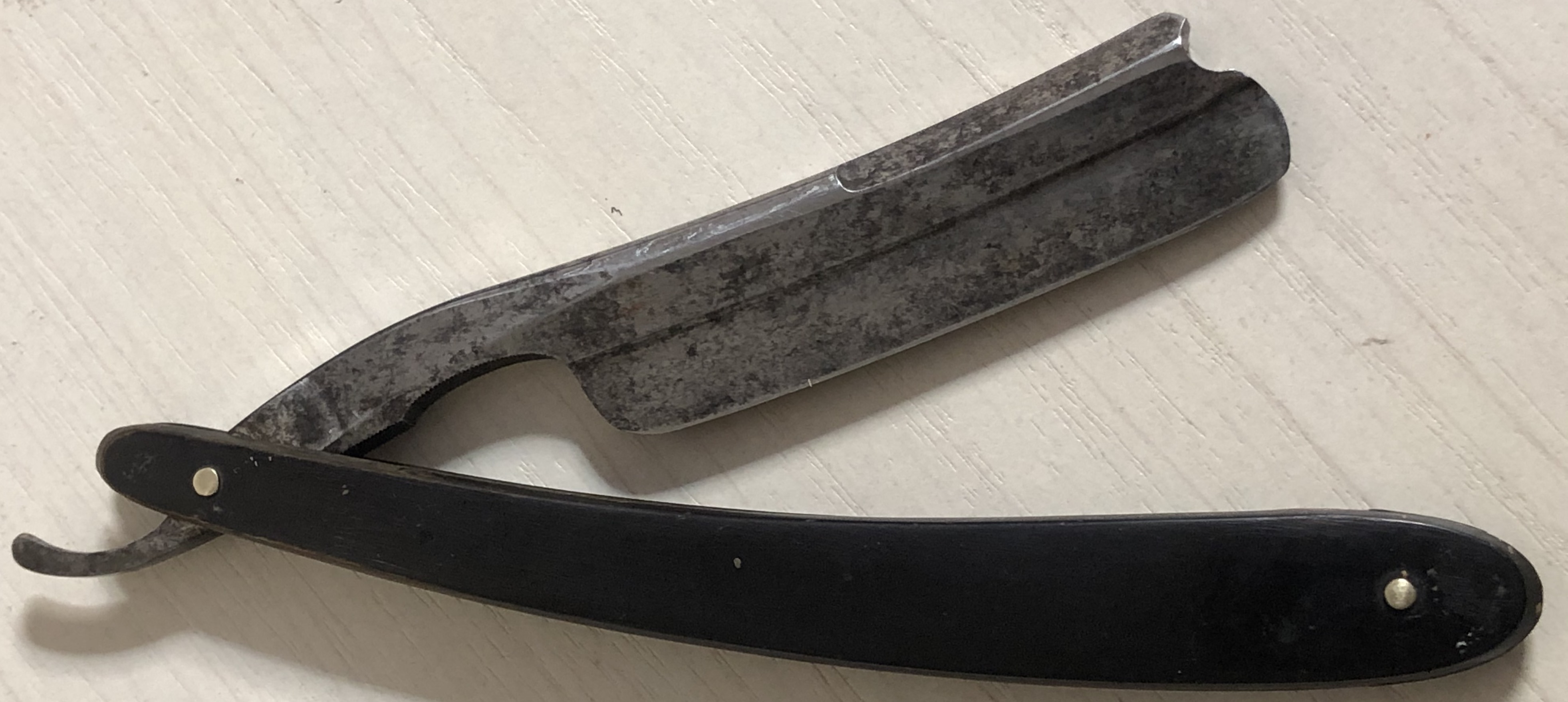 Бритва до... и после...Была печальная, но владелец настаивал. Протер тряпочкой. Изготовил оправу. Грани - ступеньки освежил.