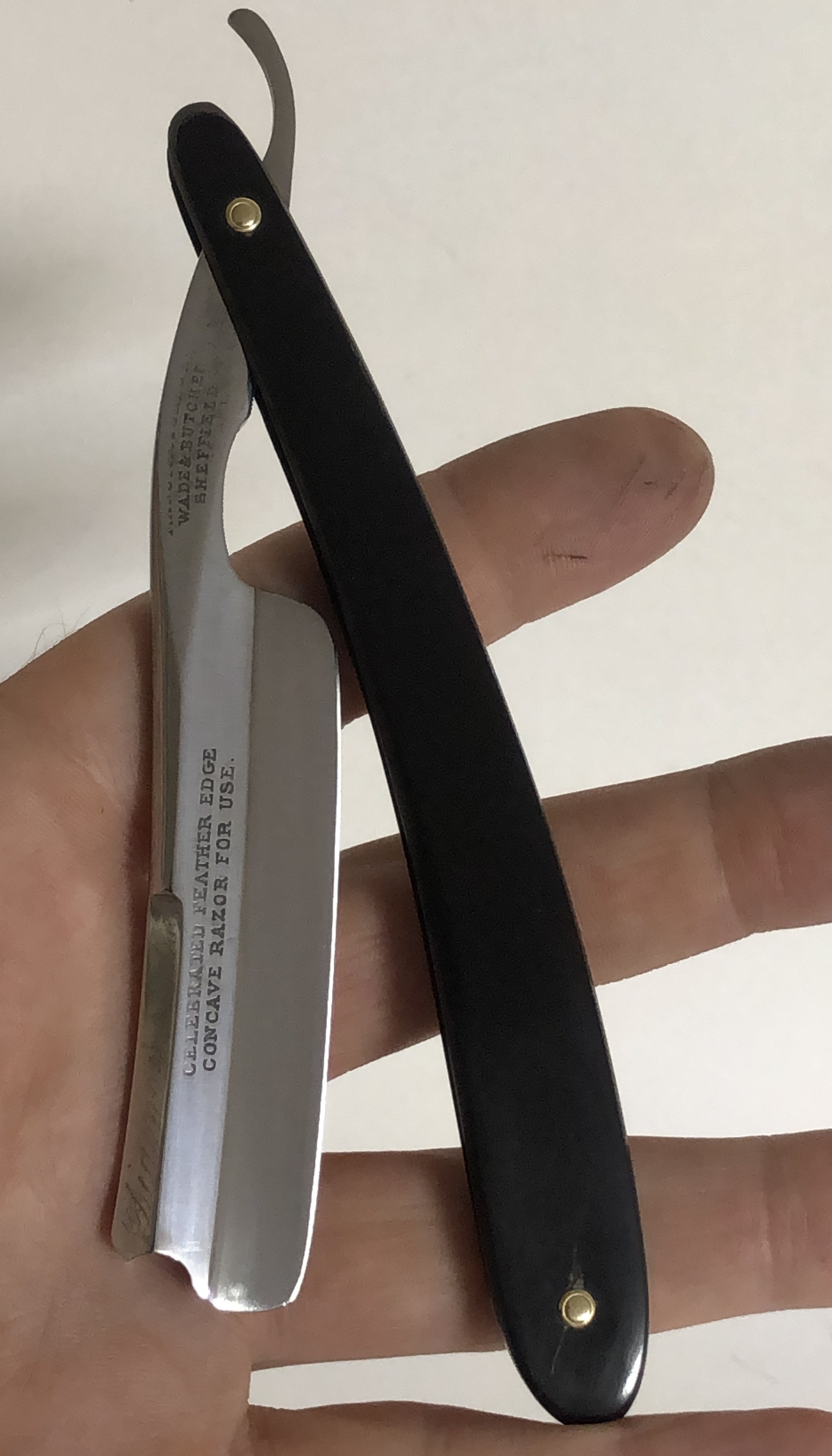 Бритва до... и после...Получил огромное удовольствие от кропотливой работы по приведению в чувство старинного "мясника",без следов пользования, как я понимаю.Давно мне не попадался псевдо-фрейм от этого легендарного бренда.И хотелось попытаться все оставить максимально в оригинальном состоянии.