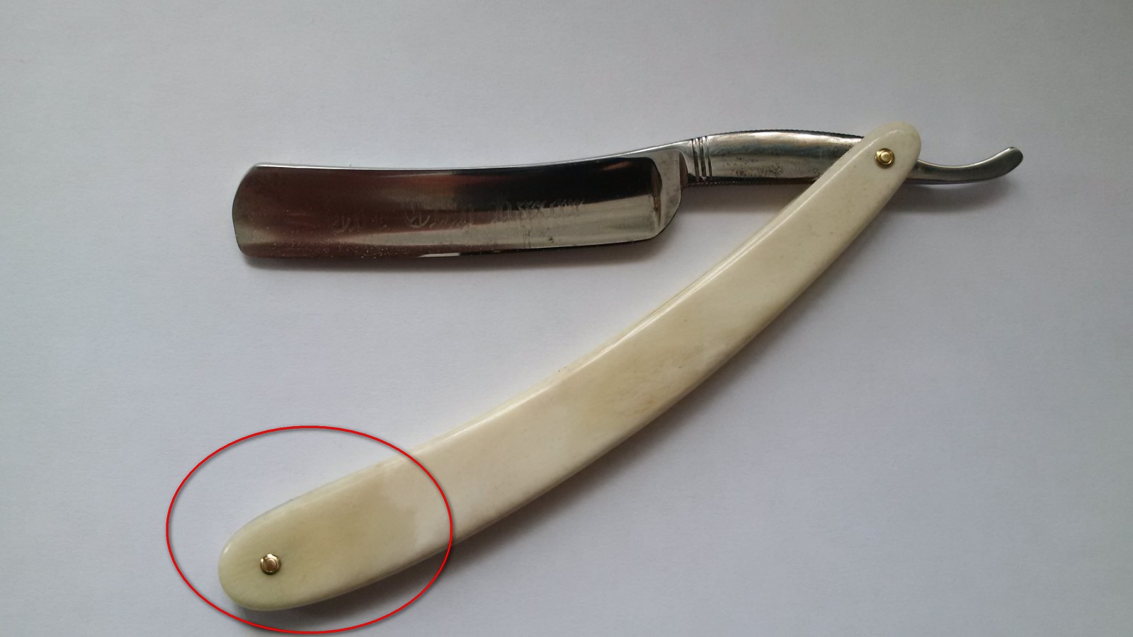 Почему спрашиваю, пару раз попадались бритвы из кости, были такие потемнения в районе переднего пина с обеих сторон, в результате обильной смазки... Бесит, когда приходится пользоваться бритвой моложе себя...