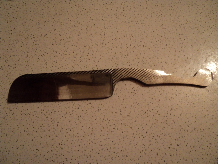 Все так ,критику лично я приветствую,но обоснованную и приняв стараюсь устранить огрехи со своей стороны,потому как все мы несовершенные ,это во первых,а во вторых каждый по своему смотрит на мир,в частности на бритвы.Скажу от себя - в руке сидит довольно хорошо,то что немного великовата (внешне)это есть ,но это кому как ,другим может подойти,даже можно найти в такой бритве какой то шарм."Насечки",под палец на фиг не нужны ,хотя можно сделать,так же можно немного изменить дизайн бритвы,это не вопрос просчитав мелкие детали в изогнутости и форме как таковой,хотя кому как ,у всех руки разные,может кто то одним пальцем 4 клавиши на пианино жмет  .Следующий момент,заточка требует определенных навыков для того чтобы хорошо и ровно вывести кромку,впрочем если руки стоят куда надо ,как у товарища m-s-r,то это не большая проблема .Тут " бобёр",мне подсказывает,что бы я не обращал внимания, на все огрехи,а лучше занимался по возможности тем ,что нравится и не ленится экспериментировать.  Спасибо всем за ваши отзывы , пожелания и советы и в сторону изделия ,первый блин как говорят комом,только вот кома я не вижу. m-s-r - молодец,вы сами видите фото,это как по моему !