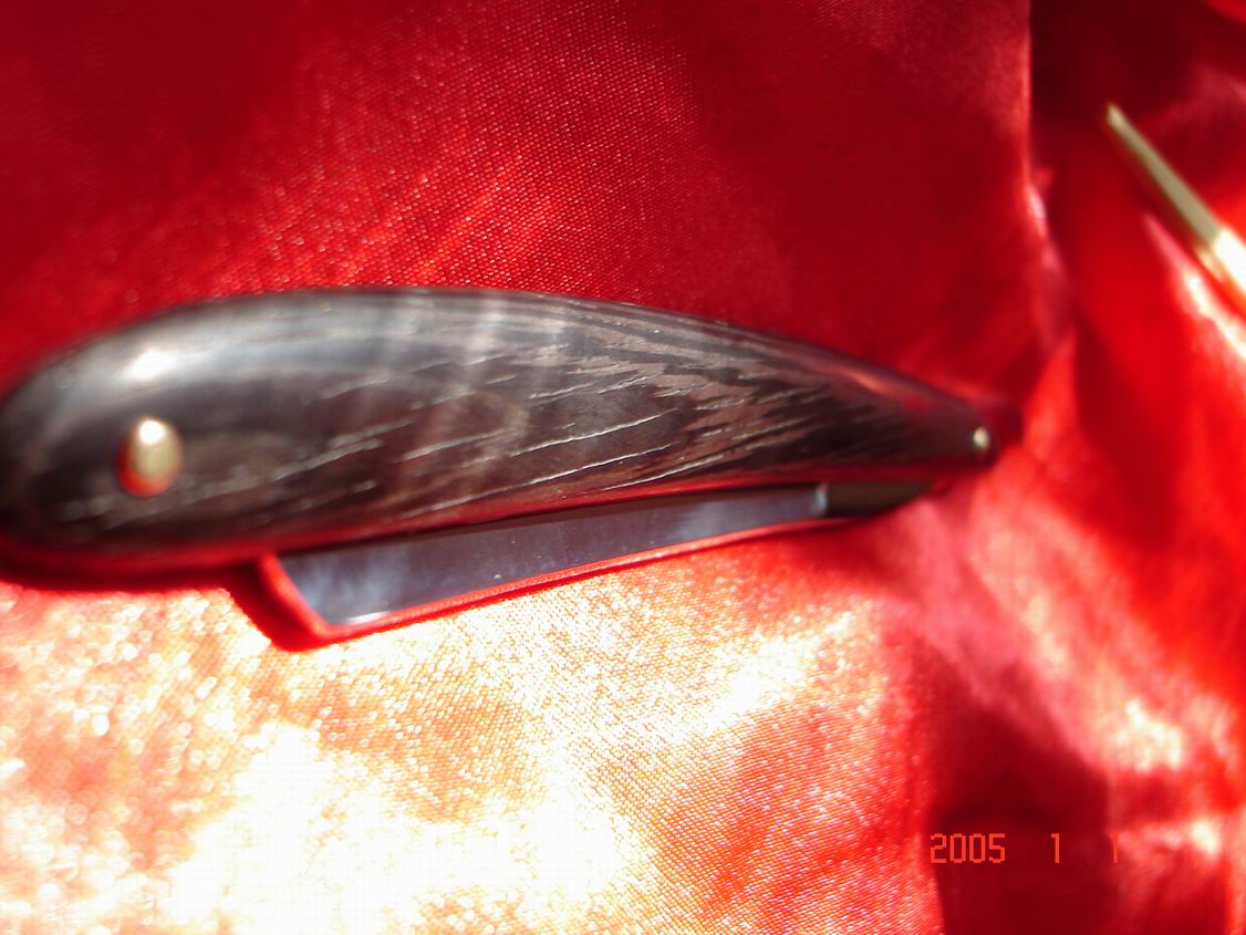 Ручка из рога , пины - латунь , клинышек оловянный .