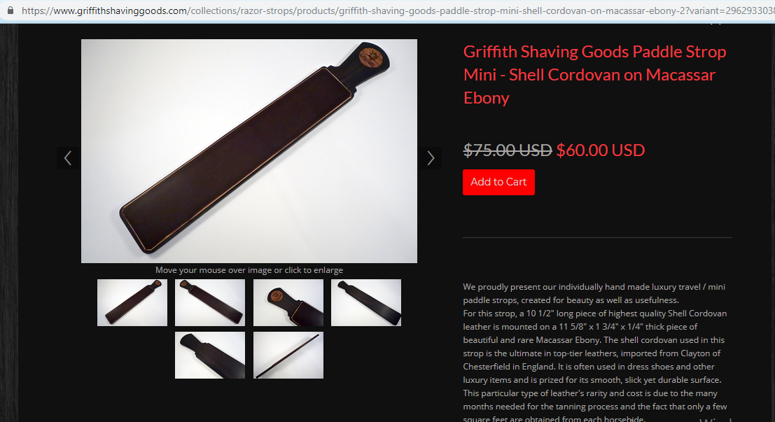 Полный цикл дубления шелл кордована пол года (у американцев читал вроде). А сделать ремень из него - это резцом по линейке порезать прямоугольник в нужном направлении. И опять же если сделают заказа на 100 ремней то завод нарежет без проблем. НО кому надо для продажи? для бизнеса? Какой мировой рынок всех кордован ремней? 100 штук? или 110? Можно захватывать рынок - заказать 150 Я в общем то начал догадываться что имел ввиду дед который сказал что сырья качественного нету для ремней 90000 - все что я нашел в сети японское выделанное качественное но тонкое. Самое толстой что нашел 1,8 мм. А так 1-2 мм пишут. Т.е. п оцентру 2 а к краям 1. А самый дешевый NOS 2000 я замерил грубо с одного края 2 с другого 4 Ну опять же тяжеловозов лошажей то не разводят ибо они нафиг не нужны никому - кормить такую скотину дорого Но вообще мне идея понравилась купить блинчик. Захотелось сделать например небольшие колодочные. скажем жесткий фетр пару мм толщиной и сверху кордован - будит шикарно. И таких колодок много получится из блина Re: Выбор ремня для правки (помощь и консультация)Зашел я на straightrazordesigns.com чтобы посмотреть, почем там сменные полосы кожи для ремней, были раньше по 25- 50 $, а все, магазин уже закрылся.