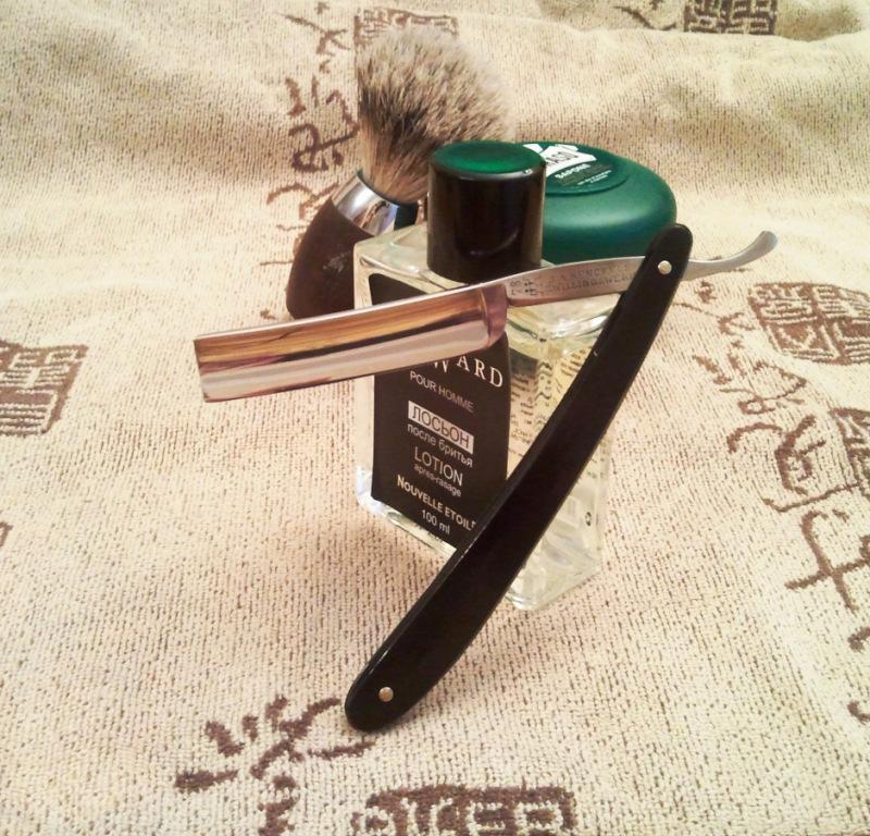 Бритва: старинный французский клин. Помазок: Hans-Jurgen Muller KG, покупал на britva.ru (заказывал с нарисованной мельницей, приехал с надписью hjm) Мыло: Dove Men+Care Лосьон после бритья: L'oreal Men Expert. Станканчик: купил на распродаже в Ашане. Чашечка для мыла и пены: керамическая салатница (куплена в Метро) Камень из квасцов: ALUN (куплен на britva.ru).