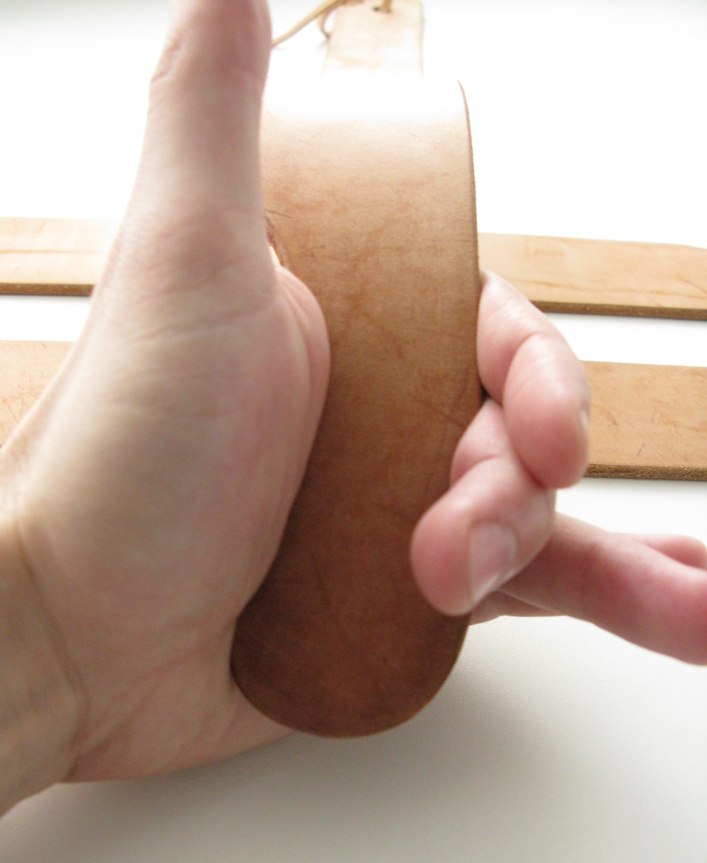 Чистый ремень должен немного прогибаться, чтобы кожа выходила на кромку - для этого достаточно просто держать ремень внатяг. Сильно тянуть не нужно. Кожа не должна быть очень плотной - такой сорт лучше под пасту, но мягкая коже - это ещё хуже. Исключение - лошадка. Шлифованная КРС умеренной плотности и более-менее приличной выделки - оптимально по соотношению цена-качество - именно из неё делают все достойные бюджетные ремни из КРС. Толщина на плотной коже уже не имеет значения, главное - выделка и обработка. Смотрите на отзывы.