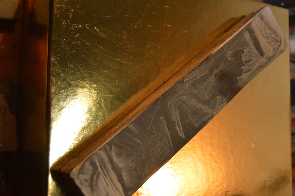 Re: Продаётся от artemarut1Spoiler Show Финишный камень из запасов, не новодел, лежит без дела! Сложно установить породу, цвет от асфальта(сухой) до черного(мокрый), твердость на 4, то есть если давить начинает выделять суспензию, работает конечно быстрее чем гуанси, выровнен, хорошо подошел бы владельцу таких камней как Арканзас, то есть камень в сете убирающий агрессивные риски, европейский размер - длина 225 ширина 41-43 толщина 25-26 Цена Продан . Прилагаю фото кромки тестовой бритвы после заточки на суспензии и чистом камне (5-7мин), фото 135 крат, соответственно видна только кромка и фото бритвы отдельно с линейкой. Spoiler Show