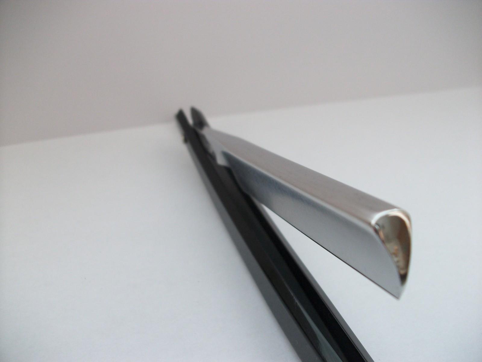 Состояние: Углеродистая сталь. Заточена и готова к бритью. При ширине полотна 14мм имеет очень массивный эрль и обушок, за счет этого в небольшой бритве чувствуется не присущая таким габаритам мощь. Цена: Продано Доставка включена. Spoiler Show