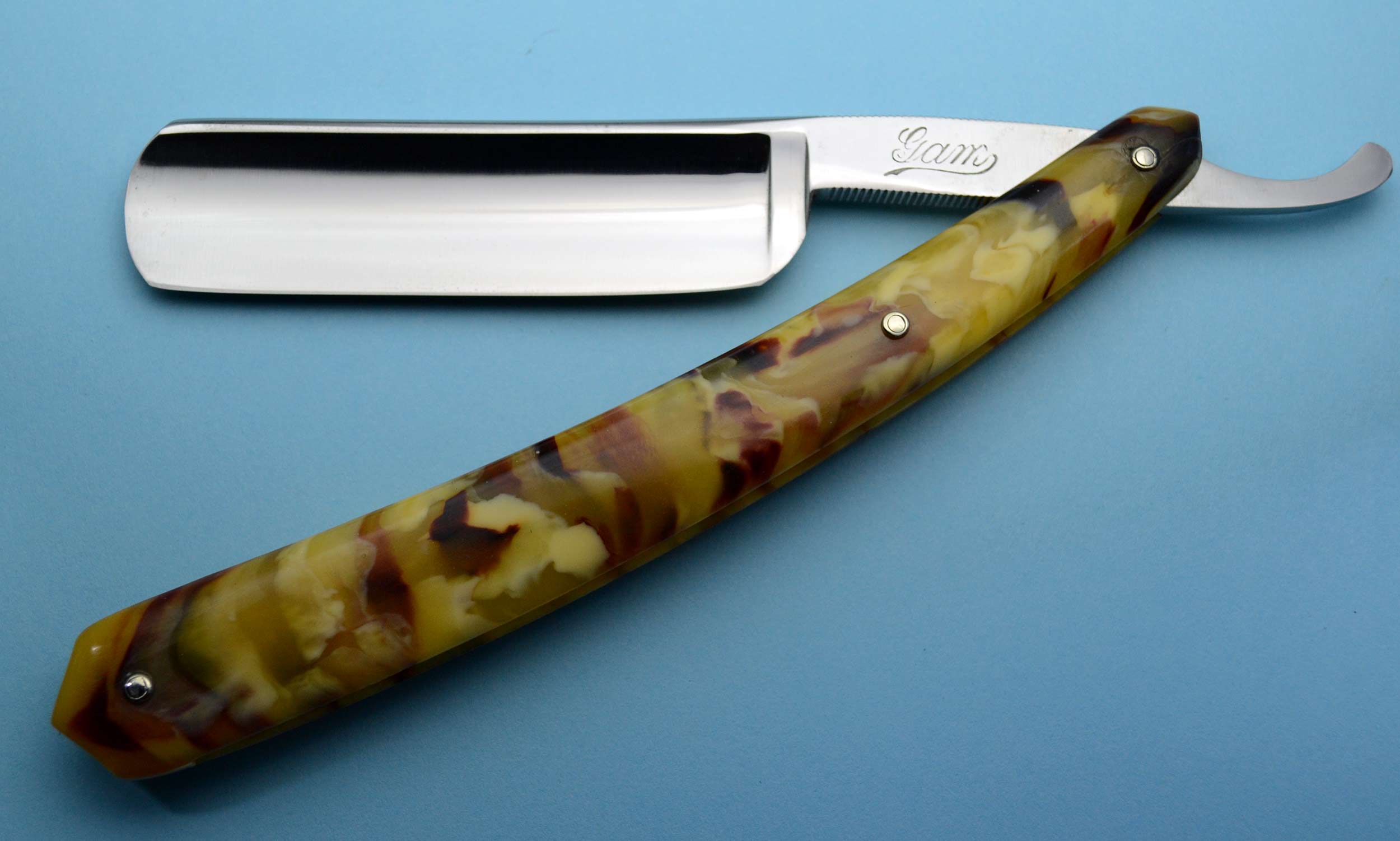 Ручка - целлулоид, в отличном состоянии, по-видимому, родная. Бритва точилась очень немного, близка к заводской геометрии. Заточена и полностью готова к бритью. Ширина полотна 20.5 мм, толщина в обушке 5.5 мм. Цена 60 евро, доставка включена.