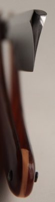 Бритва хоть и пользованная, но в хорошем состоянии. Сталь и кромка чистые, геометрия идеальная. Немного почистил полотно от древней патины, не снимая оправу. Всё в оригинале. Не стал счищать зарубки на ручке от предыдущего хозяина, но если кто пожелает, постараюсь переполировать оправу.
