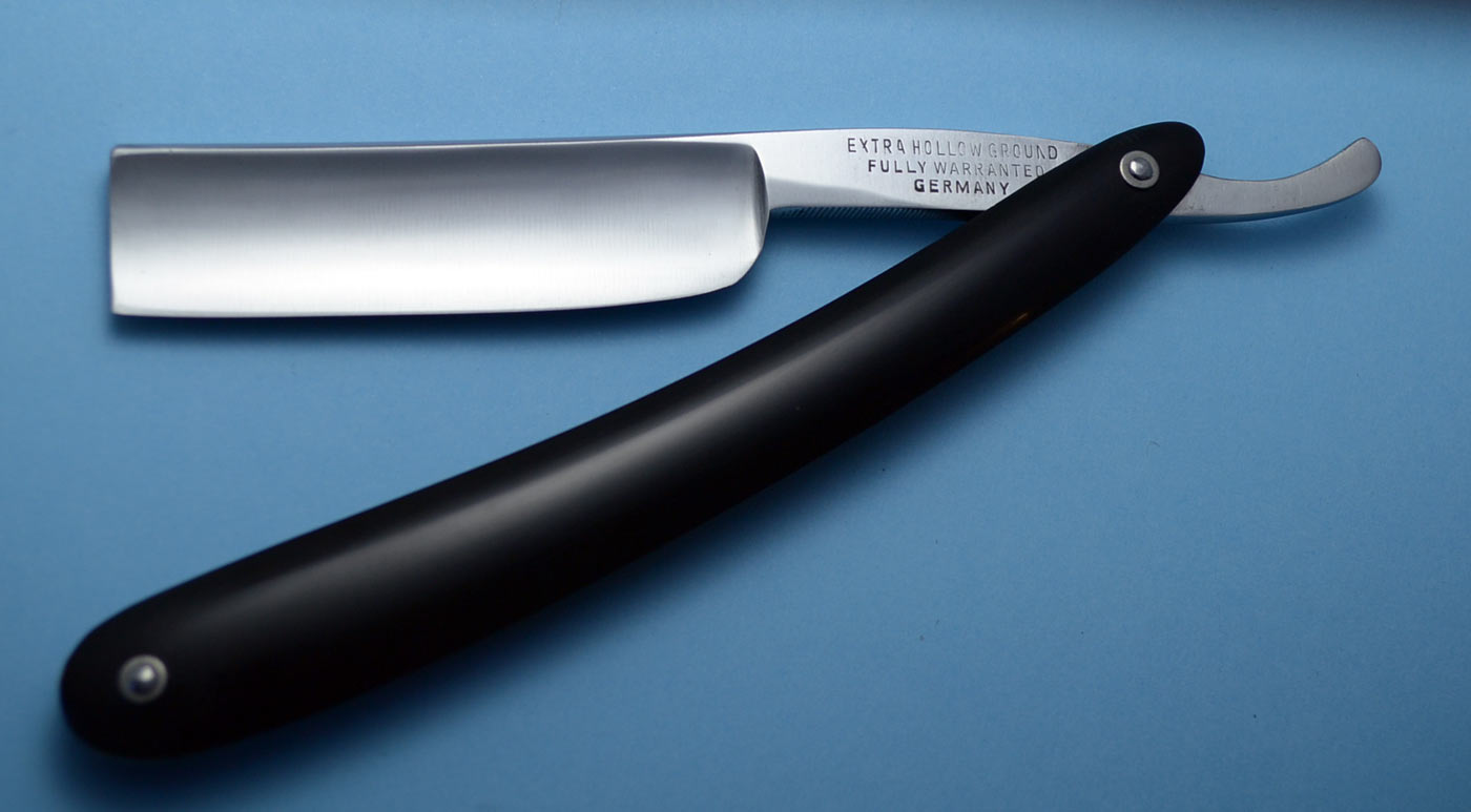 Ручка из рога, клинышек - металл. Ручка возле концевого пина имеет продольную трещину. Заклеена цианакрилатом, на прочность проверена - при нормально использовании проблем не возникнет. По геометрии скорее это все же quarter hollow, а не клин. Заточена и полностью готова к бритью. Ширина полотна 20 мм, толщина в обушке 5 мм. В комплекте штатный футляр "гробиком". ПРОДАНА Spoiler Show Сведения о производителе: http://britva.ru/forum/viewtopic.php?f= ... ilit=klaas" onclick="window.open(this.href);return false; Ручка из эбонита, в отличном состоянии. Заточена и полностью готова к бритью. Ширина полотна 14 мм, толщина в обушке чуть меньше 4 мм.