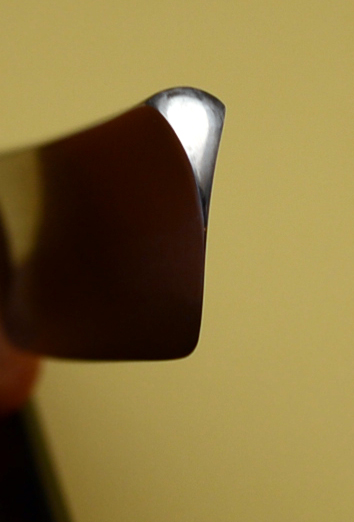 Ручка из кости, предположительно слон. На фото ручка получилась не очень похоже, в реале цвет более светлый и слегка желтоватый. Возле верхнего пина имеется трещина, заклеена цианакрилатом. При нормальном использовании проблем не будет.На фото ручка получилась не очень похоже, в реале цвет более светлый и только слегка желтый. Заточена и полностью готова к бритью. Ширина полотна 16 мм, толщина в обушке чуть меньше 4.5 мм.