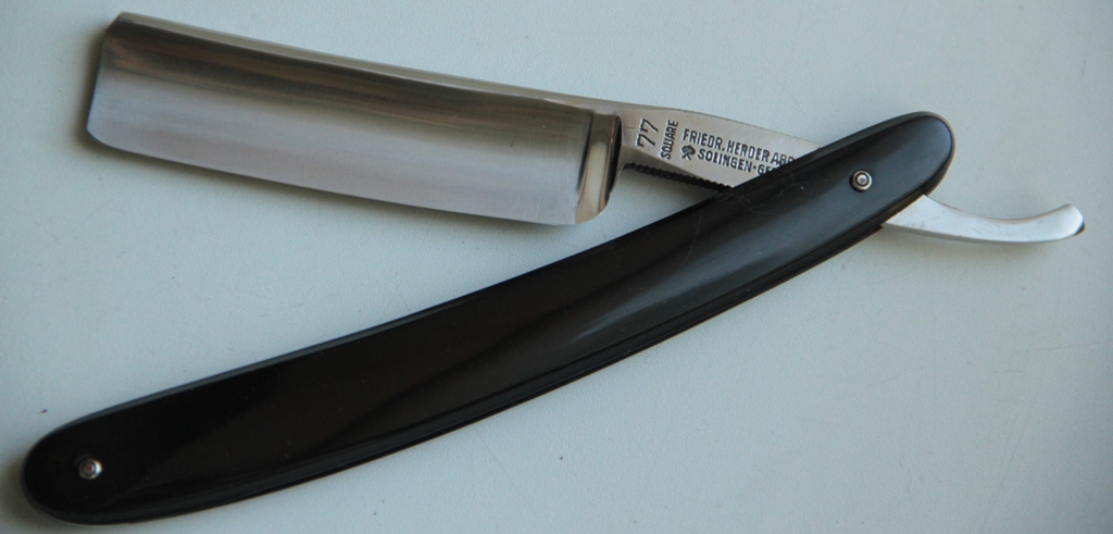 Ну а я продолжу с бритвами... Непользованная немка от известной фирмы FRIEDR.HERDER ABR.SON,SOLINGEN, 77 модель. Ширина полотна-21 мм. Толщина обушка-5.8 мм Полная вогнутость Углеродистая сталь. Середина 20-го века. Почитать о бренде можно тут https://straightrazorpalace.com/razors/ ... ition.html" onclick="window.open(this.href);return false; Также есть тема и здесь. Бритва находится в первозданном виде, как вчера с завода. Только масло стер с полотна.Естественно, ничего не разбиралось и не ремонтировалось. Идеальная геометрия. Заводская заточка. Сталь и кромка находятся в идеальном состоянии.Родная пластиковая коробочка в комплекте! Бритва будет заточена перед отправкой и доведена до комфортного бритья. Настоящее коллекционное качество. Не пропустите и сделайте себе летний подарок.. Цена-14500 р с доставкойПРОДАН Внимание! Важная информация! Spoiler Show