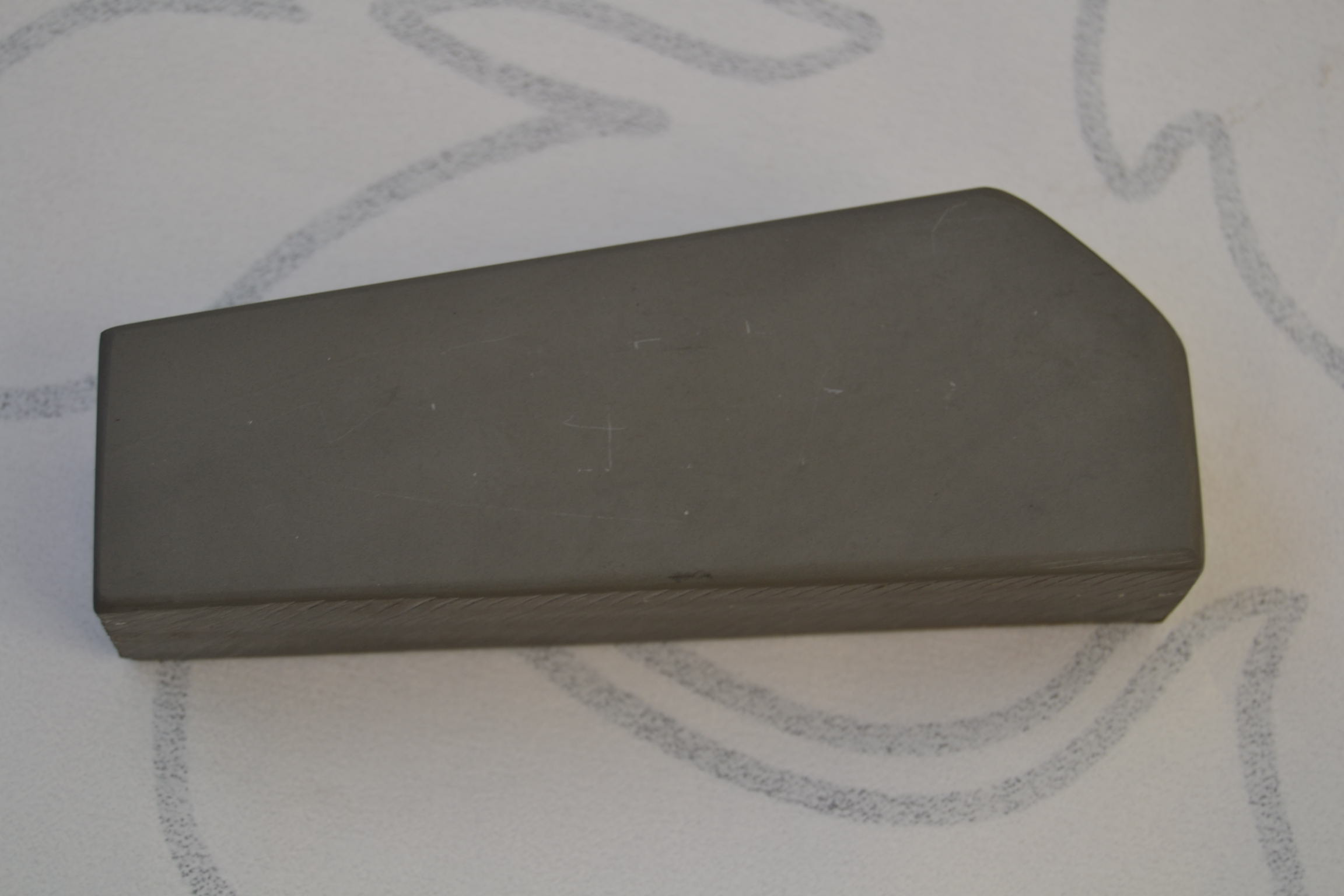 Если в двух словах, то камень меня удивил и очень понравился. Хотя я и имею несколько разных атрибутированных Эшеров, но безумно хотелось попробовать продукцию Питера и проверить его на честность. Напомню, что в личной беседе и на форумах он писал, что нашёл тот самый Эшеровский карьер в Тюрингии, который был закрыт ещё в начале прошлого века по причине выработки.После этого было ещё несколько карьеров, камни из которых выходили под брендом Эшер, но именно из старой шахты выходили самые-самые качественные экземпляры. Но, кое что, видимо ещё осталось и это кое что мы сейчас имеем возможность купить за недорого, не переплачивая большие деньги за бренд.Мне до конца не верилось в то,что такое возможно, что сейчас есть люди, которым будет интересно искать старые шахты и заниматься исследованием истории давно исчезнувшей фирмы.Единственно, что успокаивало, это то, что Питер действительно увлечённый товарищ, интересный собеседник и на него можно положиться. Если бы не неправильная форма моего испытуемого камня, я бы не сомневался, что передо мной настоящий Эшер. Камень имеет примерно одинаковую твёрдость, что и остальные Эшеры. Глядя в микроскоп, я не заметил никакой разницы между камнями. Такие же трещины, характер сколов. После притирки и первой доводки на Этом камне, замечено быстрое выглаживание рабочей поверхности, что говорит, что камень действительно тонкий, финишный. Суспензия наводится быстро( как на всех Эшерах) и тактильно, при работе, также ничем не отличается от работы на Эшере. Камень быстро работает и после чистовой работы без суспензии, лезвие бритвы уверенно проходит тест на рез волоса.Бритьё получилось, как обычно, после Эшера, мягкое, комфортное и без раздражения. Для тех товарищей, кто ищет сейчас недорогой натуральный финик класса Эшера,это наиболее подходящий и уникальный в своём роде вариант. Не знаю, пилит ли сейчас ещё Питер подобные камни, но если пилит и продаёт, то рекомендовал бы не проходить мимо и попробовать купить нечто подобное. Уверен, что данные экземпляры стоят своих денег и ни коем образом не разочаруют в пользовании. Всё будет ХОРОШО...тел:+79065827134
