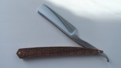 Кратко о бритве. При заказе бритвы была прислана фото бритвы Левиса со словами- "вот что то типа этого" После обсуждения появился такой вариант. Изгибы (изящество) + грубая железка( полированный сатин)При получении заказчик был доволен как форм фактором так и габаритами. Материалы У10, зебрано. закалка с самоотпуском.