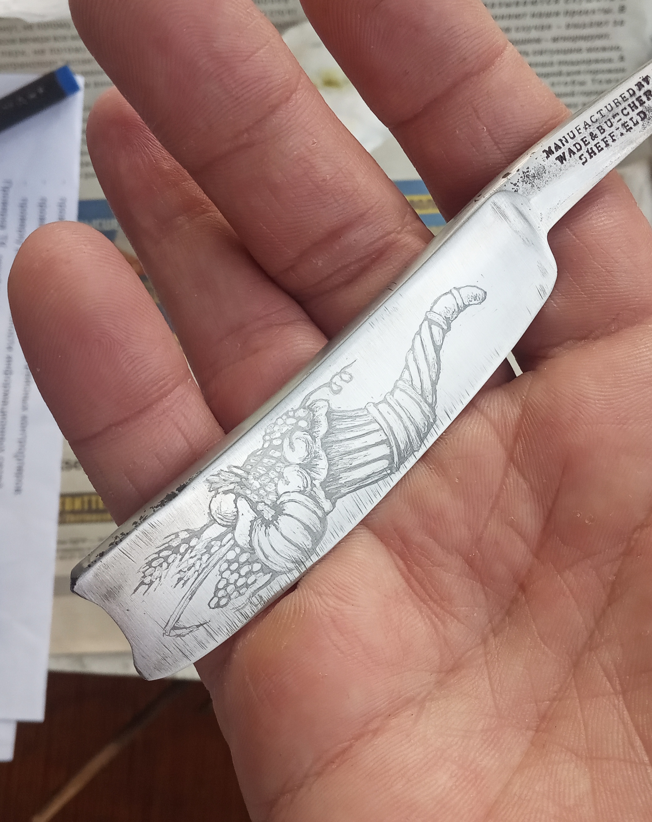 Травление клинка, восстановление рисунка.Ремонт опасных бритв, звонить с 11-00 до 23-00, +79267729357, (whats app, telegram, VK), спросить Олега.