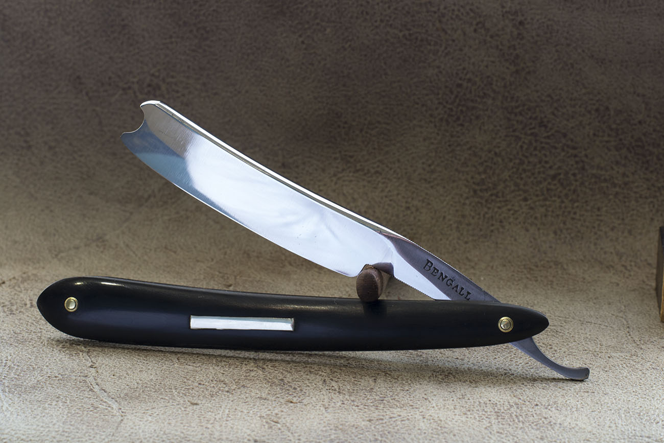 Рад представить очередной крайне интересный и редкий клин торговой марки Bengall. По моему разумению, бритва относится к 50-60 гг 19 века. Подобных бритв сохранилось мизерное количество, это свидетельствует о том, что марка с более чем двухсотлетней историей в те времена переживала не самый лучший период своей жизни. Данный экземпляр уже довольно долго хранится в моей коллекции. Удивление вызывает потрясающая сохранность металла – на полотне родная заводская полировка со следами довольно грубого сатина. Я лишь разобрал бритву для установки новых пинов, чистки эрля и полировки рукояти. Ширина полотна 11/16 (17.6мм.) Безупречная геометрия и очень интересная сталь, по ощущениям немного более твердая чем на старых бритвах Bengall Cast Steel. Очень рекомендую данную для пополнения коллекции старых шеффилдских бритв, так же будет удобна для ежедневного использования. Продано Bengall Show