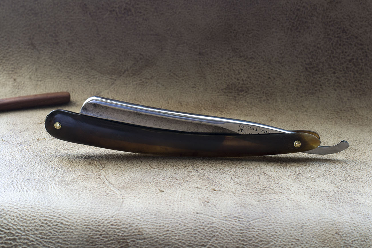 Бритва второй 19 века, от одного из моих любимых производителей того времени. Самобытный дизайн, дол интересной конструкции, свойственный бритвам от Томаса Тернера и армейским бритвам от Томаса Варда. Ширина полотна 21 мм. Прекрасная геометрия, сталь по качеству не уступающая более известным шеффилдским производителям. Бритва точилась мало, возможно не была в использовании, заточка имела признаки заводской, без сведения кромки. Родная роговая рукоять без клинышка. Прекрасно подойдет новичку, так же отлично дополнит коллекцию старых английских бритв. Укомплектована родным чехлом на 2 бритвы, второй экземпляр к сожалению не попал ко мне в руки. Заточена и готова к бритью. Продано. Spoiler Show