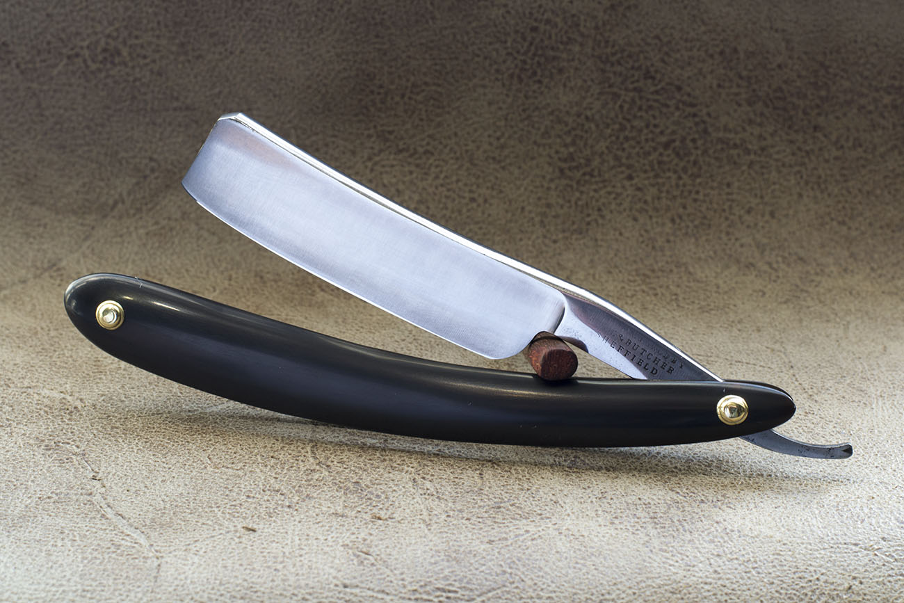 Представляю очередную бритву от наиболее именитого производителя опасных бритв из Англии. Ширина полотна 5/8 (16мм.) Роговая рукоять, вогнутость – клин. Именно такие старые шеффилдские клины среднего размера я рекомендую для повседневного использования и в качестве стартовой бритвы для новичка. Так же бритва прекрасно подходит для окантовки усов, висков и бороды. Легкая, маневренная бритва с хорошей геометрией, от легендарного производителя. Продано Wade & Butcher Show