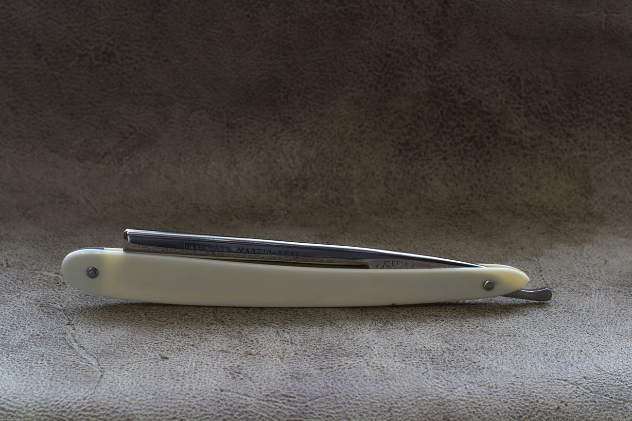Шведская бритва от известного производителя Erik Anton Berg. Ширина полотна 19.6 мм(6/8), родная рукоять из бивня слона. Производитель неоднократно удостаивался наград на индустриальных выставках в Стокгольме и на более поздних бритвах встречаются памятные клейма на эту тему. Я видел несколько образцов с клеймом о присвоении марки золотой медали на выставке в Стокгольме в 1897 году. На этом полотне есть лишь упоминания о патенте, выданном в августе 1895, уместно предположить что бритва была выпущена как раз в период с 1895 по 1897 гг. Так же на бритве присутствует информация о виде стали из которой она изготовлена - Fagersta Martin Stal - Мартеновская Сталь, полученная в местечке Fagersta. Отличный образец шведской бритва во всей красе. Рекомендую коллекционерам, как довольно редкий и хорошо сохранившийся экземпляр шведской бритвы конца 19 века, так же отлично подойдет новичку. Заточена и готова к бритью. Продано Erick Show