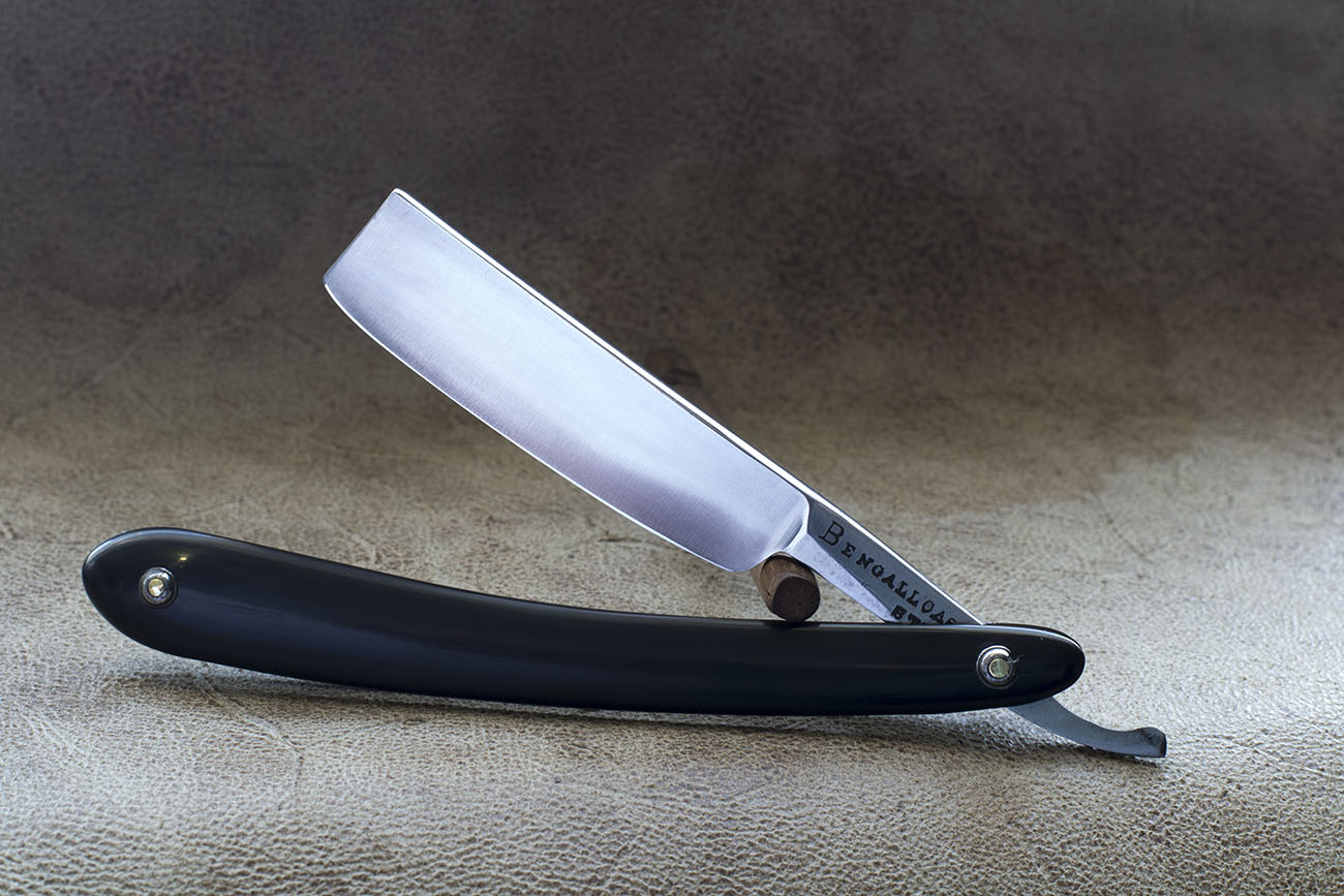 Bengall Cast Steel - это бритвы, которые нравятся всем. Оригинальный дизайн полотна, высококачественная литая сталь и прекрасная геометрия мало кого оставляют равнодушным. Без преувеличения – это одни их лучших английских бритв за все время. Помимо довольно яркого внешнего вида, эти бритвы прекрасно зарекомендовали себя в бритье. Период производства – 30 - 40 гг 19 века. Данный экземпляр получил новую роговую рукоять, полотно бритвы находится в прекрасном состоянии, родные шайбы. (Одна из шайб на осевом пине треснула, влияет только на внешний вид, шайбу могу заменить по просьбе покупателя). Ширина полотна 19.5 мм (6/8). Бритва заточена и готова к бритью. Продано Bengall Show