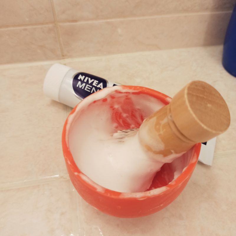 Кружка для бритьяЯ пробовал, но смысла в этом не увидел, мне удобнее пену как раз размазывать по всей чаше. А вот если борт сверху загнут вовнутрь, это удобно, пена при взбивании не вылетает