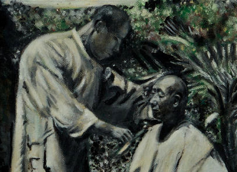 „Barber in La Alameda” „Цирюльник в Ла-Аламеда” 1857 г. („Ла Аламеда” является главным проспектом Сантьяго). Взглянем поближе: С 2013 г. с кайфом бреюсь опасной бритвой пять раз в неделю, в три прохода.