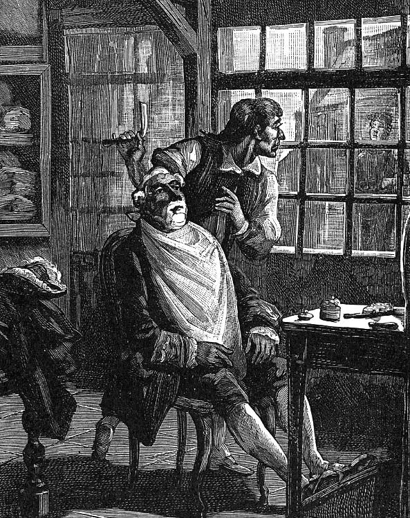 „The Barber Inherits a fortune” Цирюльник наследует состояние” ок.1880 Взглянем поближе: С 2013 г. с кайфом бреюсь опасной бритвой пять раз в неделю, в три прохода.