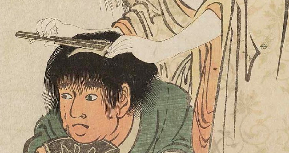 „Yamauba Shaving Kintaro's Head” „Ямауба бреет голову Кинтаро” ок. 1801 г. Взглянем поближе: С 2013 г. с кайфом бреюсь опасной бритвой пять раз в неделю, в три прохода.