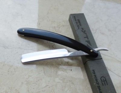 Английская опасная бритва Jamieson & Co Aberdin & Mileende Special Razor Enpire Guaranted. Сделана для шотландского заказчика, ориентировочно конец 19 века. Форма полотна - полная вогнутость, что довольно редко встречается на старых английских бритвах, ширина - 6/8 дюйма, легкая заводская улыбка. Изготовлена и установлена новая оправа из киринита, имитация под черепаховый панцирь, клинышек - олово, заклёпки - латунь. Инструмент заточен на японских водных камнях и приведён в полную боевую готовность, купил и сразу можно бриться. Подойдёт, как новичку, так и опытному профессионалу, как в коллекцию, так и в постоянное использование. Также всегда есть ремни для правки из натуральной кожи. При покупке с ремнем пересылка по РФ за мой счёт. Цена "шотландки" - 12500 рублей.